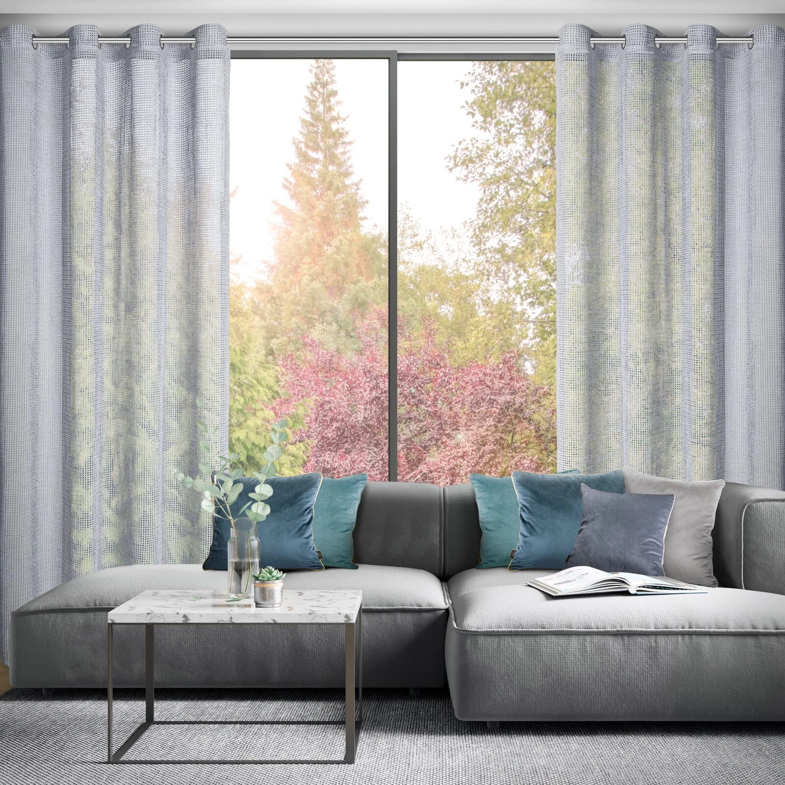 Firana gotowa z siatki szenilowej szerokość: 140 cm, długość: 250 cm, kolor: srebrny, Gramatura: 180 GSM, Skład: 100% poliester