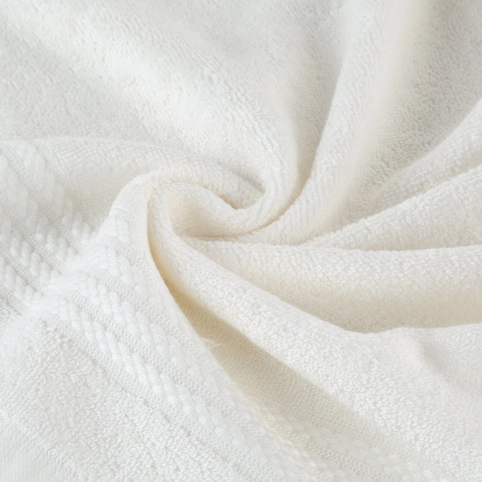 Jednobarwny ręcznik z miękkiej i chłonnej tkaniny bawełnianej o splocie frotte zdobiony kolorową bordiurą w stylu fastrygi. Łatwy w praniu, nie farbuje. szerokość: 50 cm, długość: 90 cm, kolor: kremowy, Gramatura: 550 GSM, Skład: 70% modal, 30% bawełna