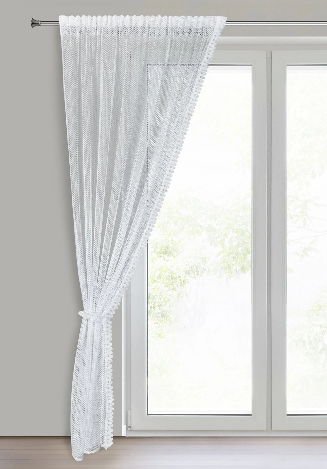 - Komplet firan gotowych o strukturze siatki zdobiony falbanką szerokość: 140 cm, długość: 270 cm, kolor: biały, Skład: 100% poliester