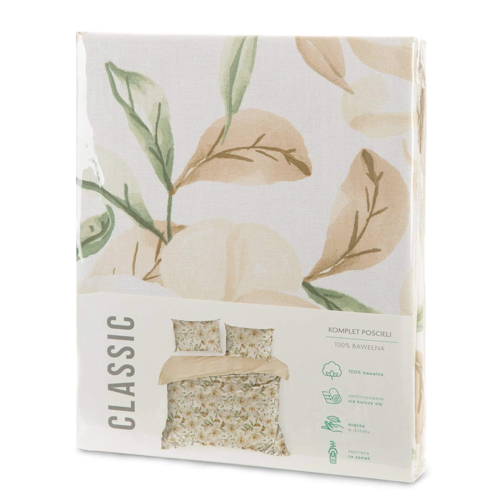 Komplet pościeli bawełnianej z nadrukiem szerokość: 220 cm, długość: 200 cm, kolor: beżowy, Gramatura: 105 GSM, Skład: 100% bawełna