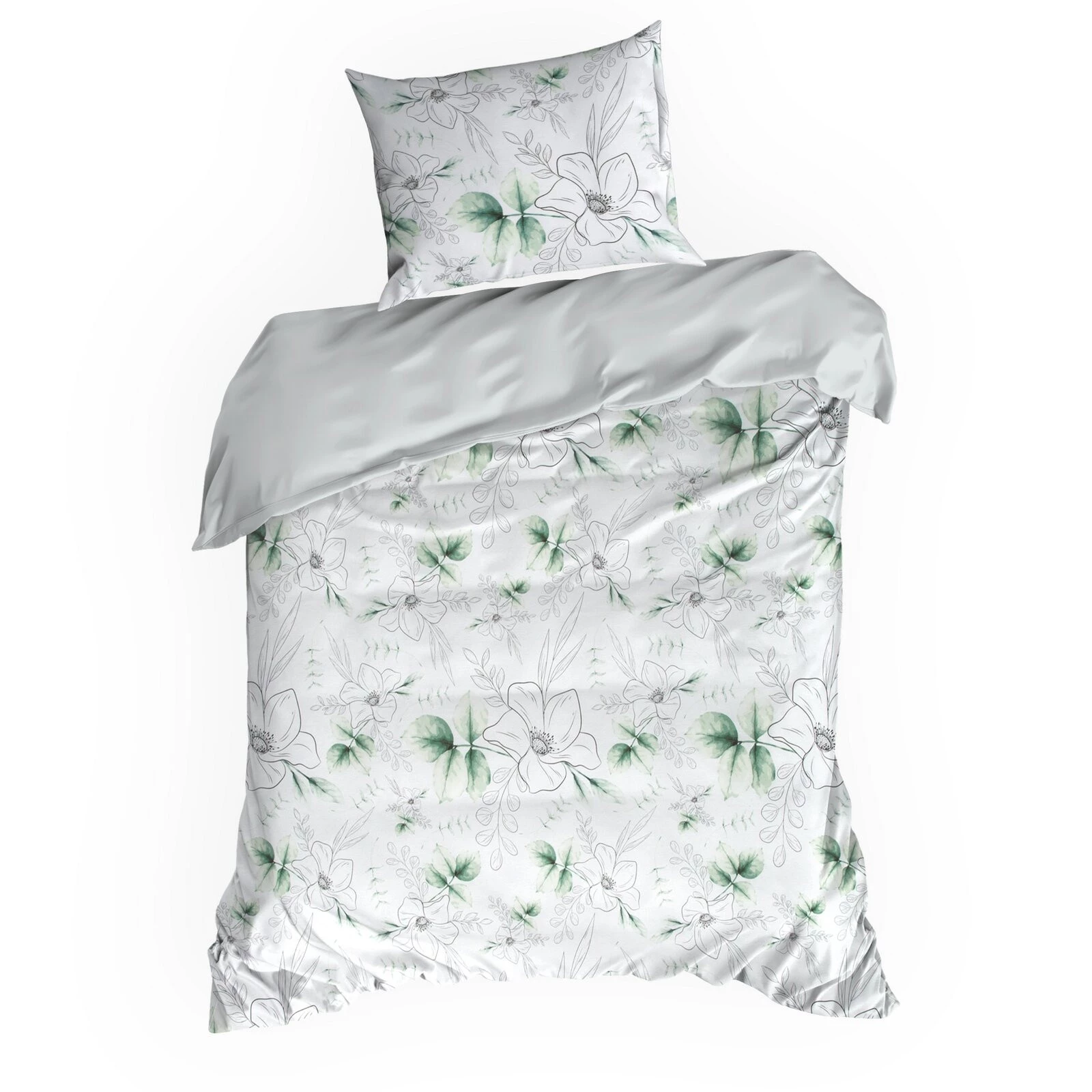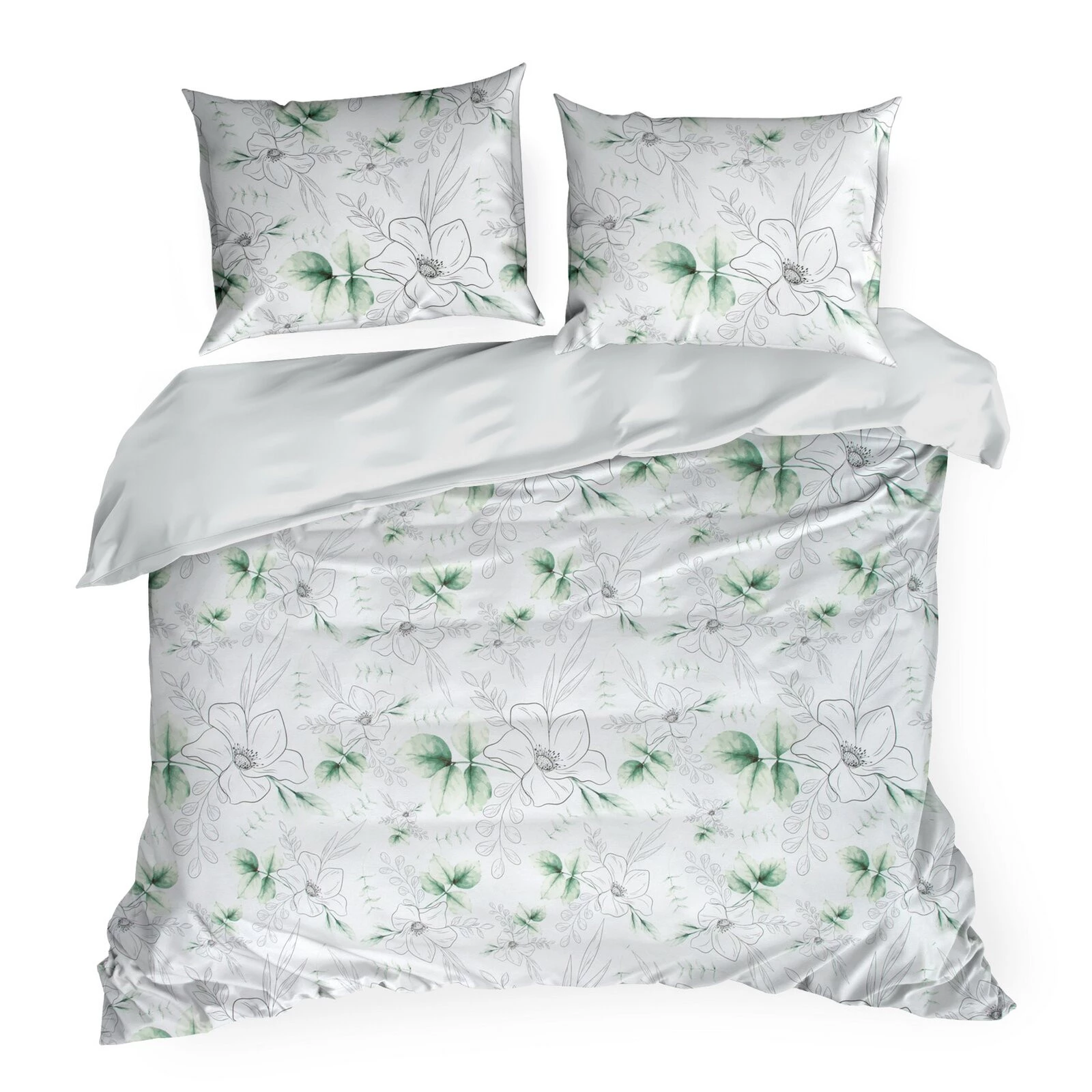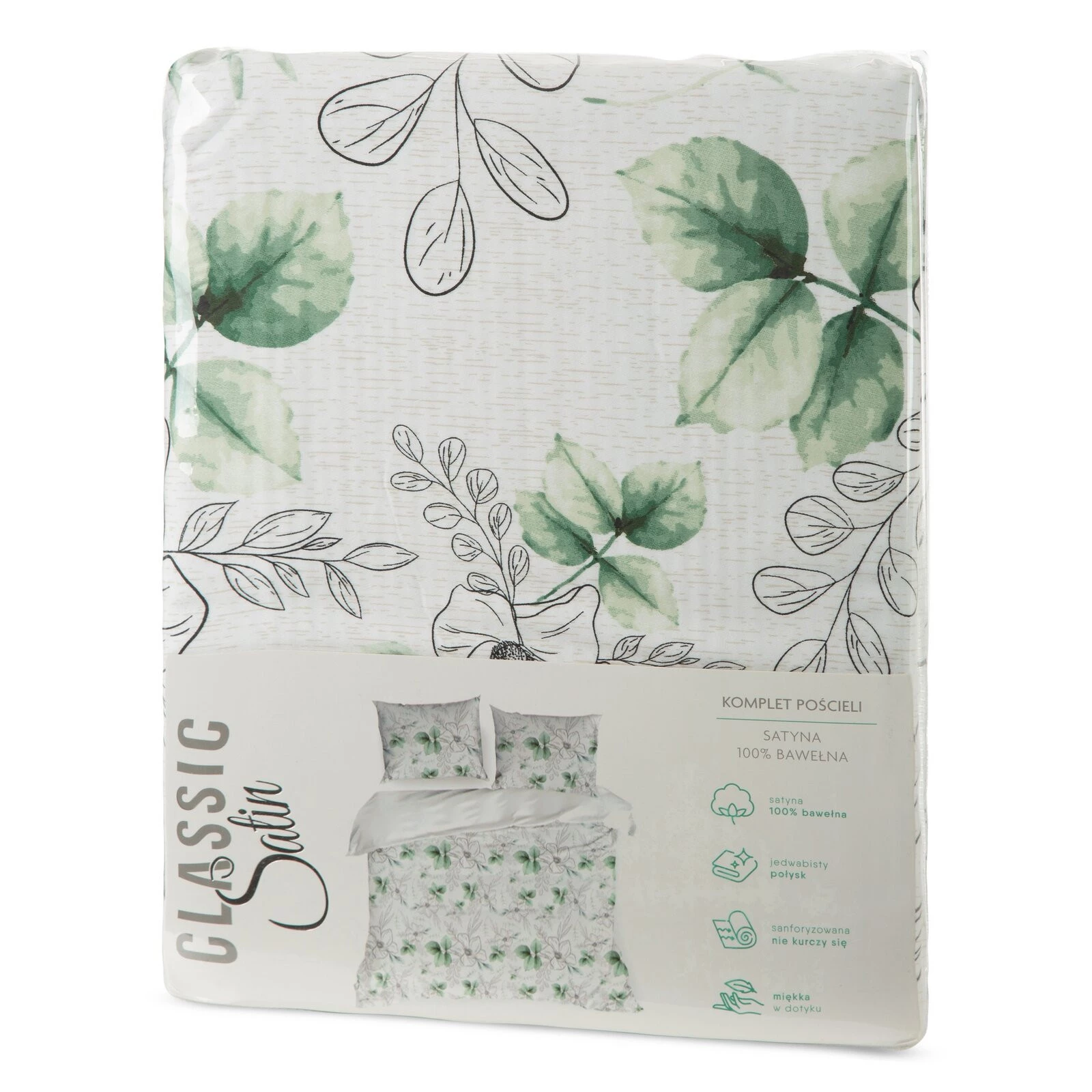 - Komplet pościeli z satyny bawełnianej z nadrukiem szerokość: 220 cm, długość: 200 cm, kolor: biały, Gramatura: 115 GSM, Skład: satyna, 100% bawełna
