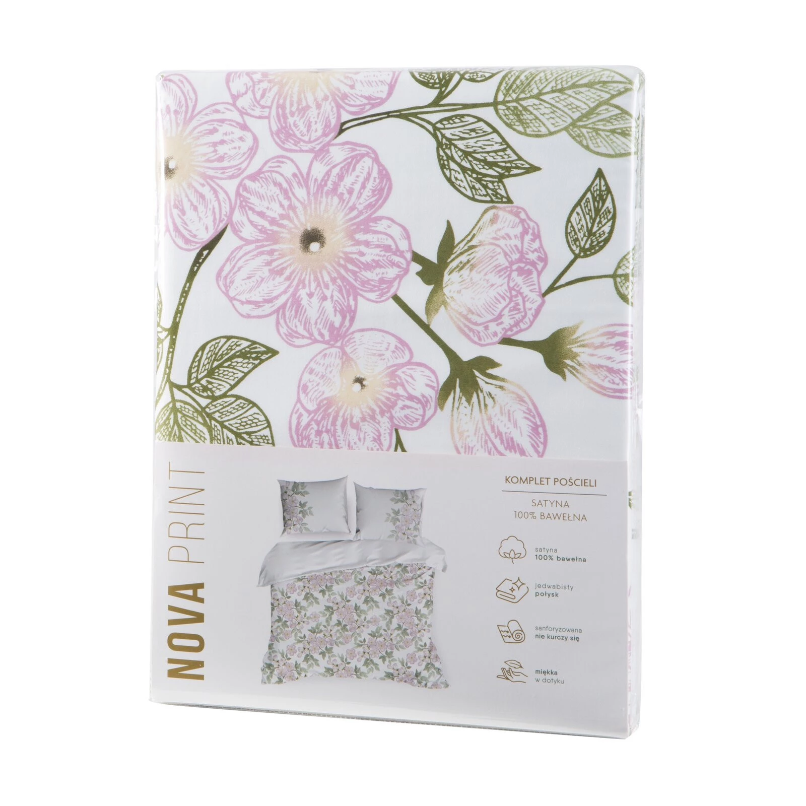 Komplet pościeli z satyny bawełnianej z nadrukiem szerokość: 160 cm, długość: 200 cm, kolor: biały, Gramatura: 125 GSM, Skład: satyna, 100% bawełna