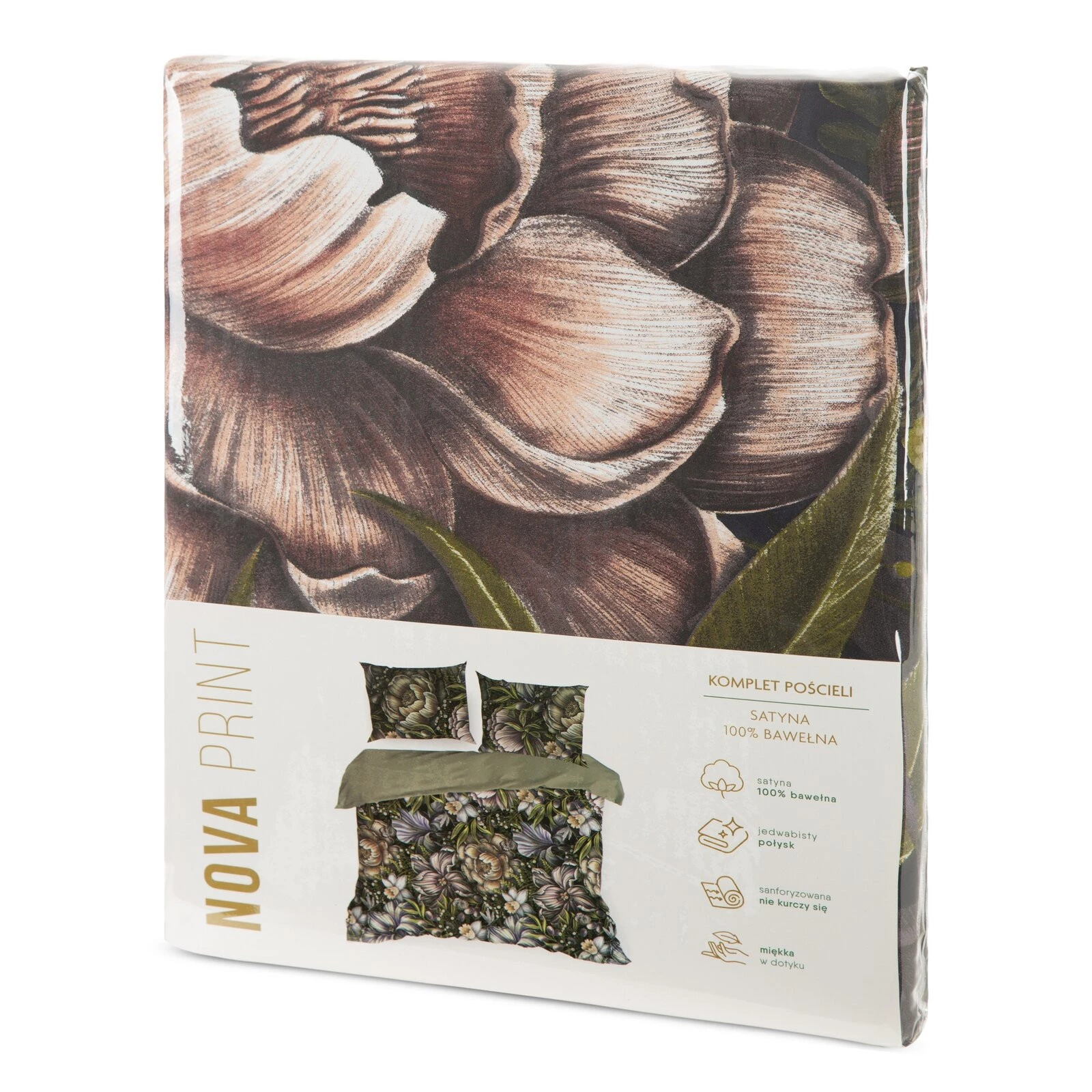 Komplet pościeli z satyny bawełnianej z nadrukiem szerokość: 220 cm, długość: 200 cm, kolor: oliwkowy, Gramatura: 125 GSM, Skład: satyna, 100% bawełna