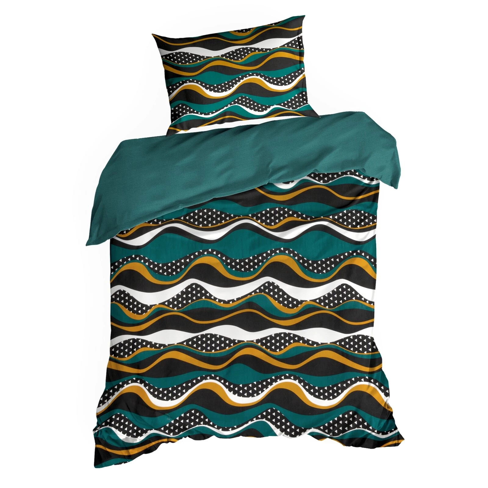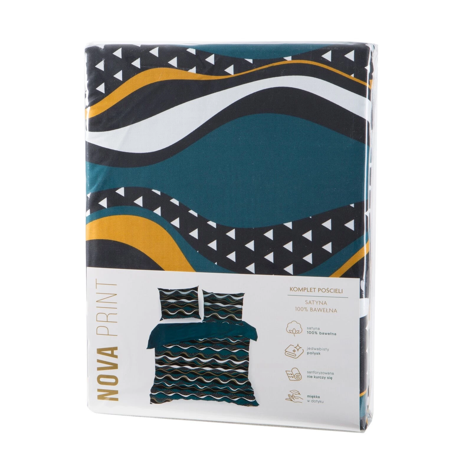 Komplet pościeli z satyny bawełnianej z nadrukiem szerokość: 160 cm, długość: 200 cm, kolor: ciemnoturkusowy, Gramatura: 125 GSM, Skład: satyna, 100% bawełna