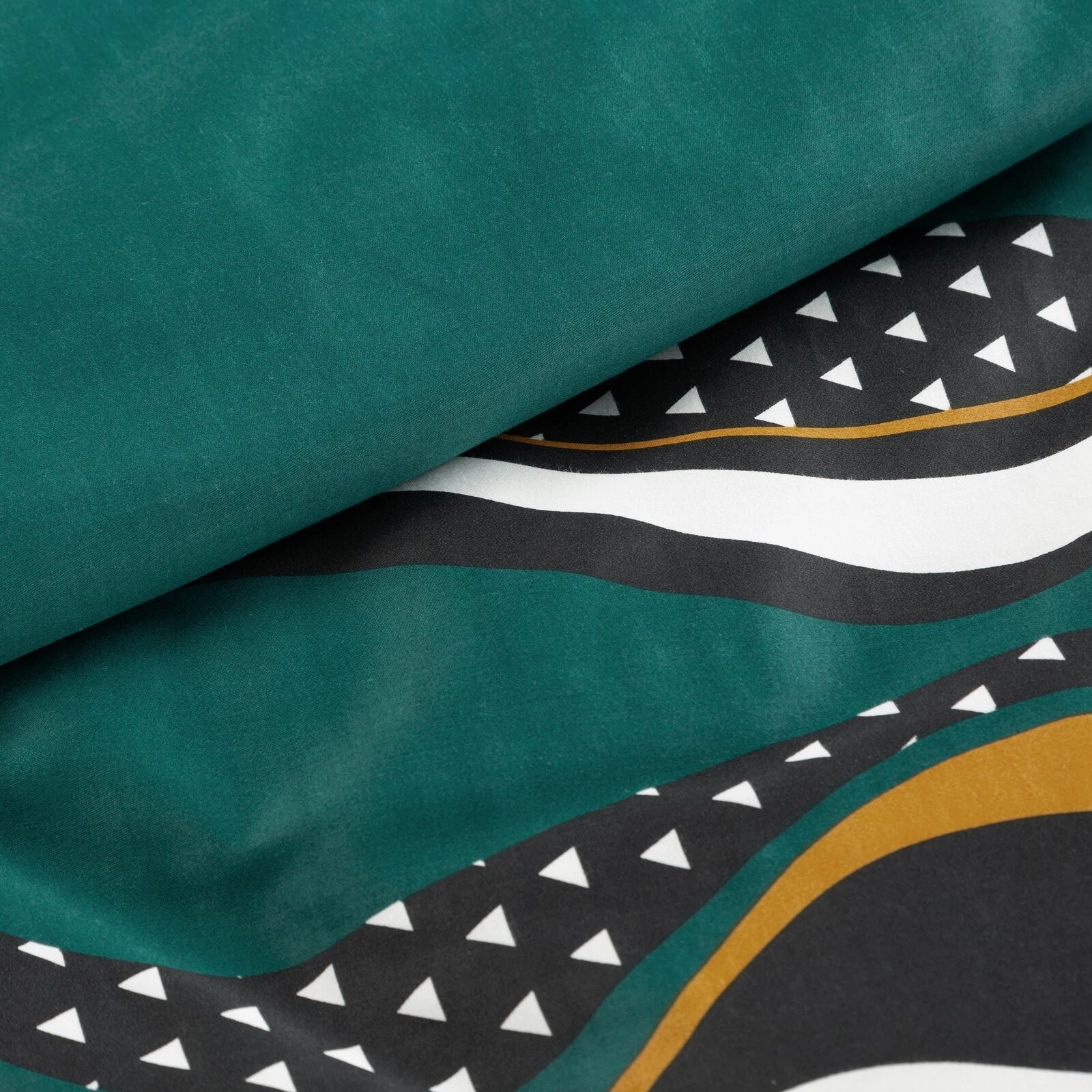 Komplet pościeli z satyny bawełnianej z nadrukiem szerokość: 220 cm, długość: 200 cm, kolor: ciemnoturkusowy, Gramatura: 125 GSM, Skład: satyna, 100% bawełna