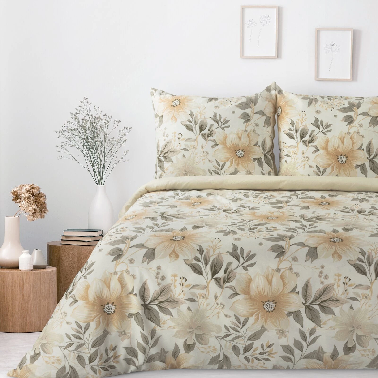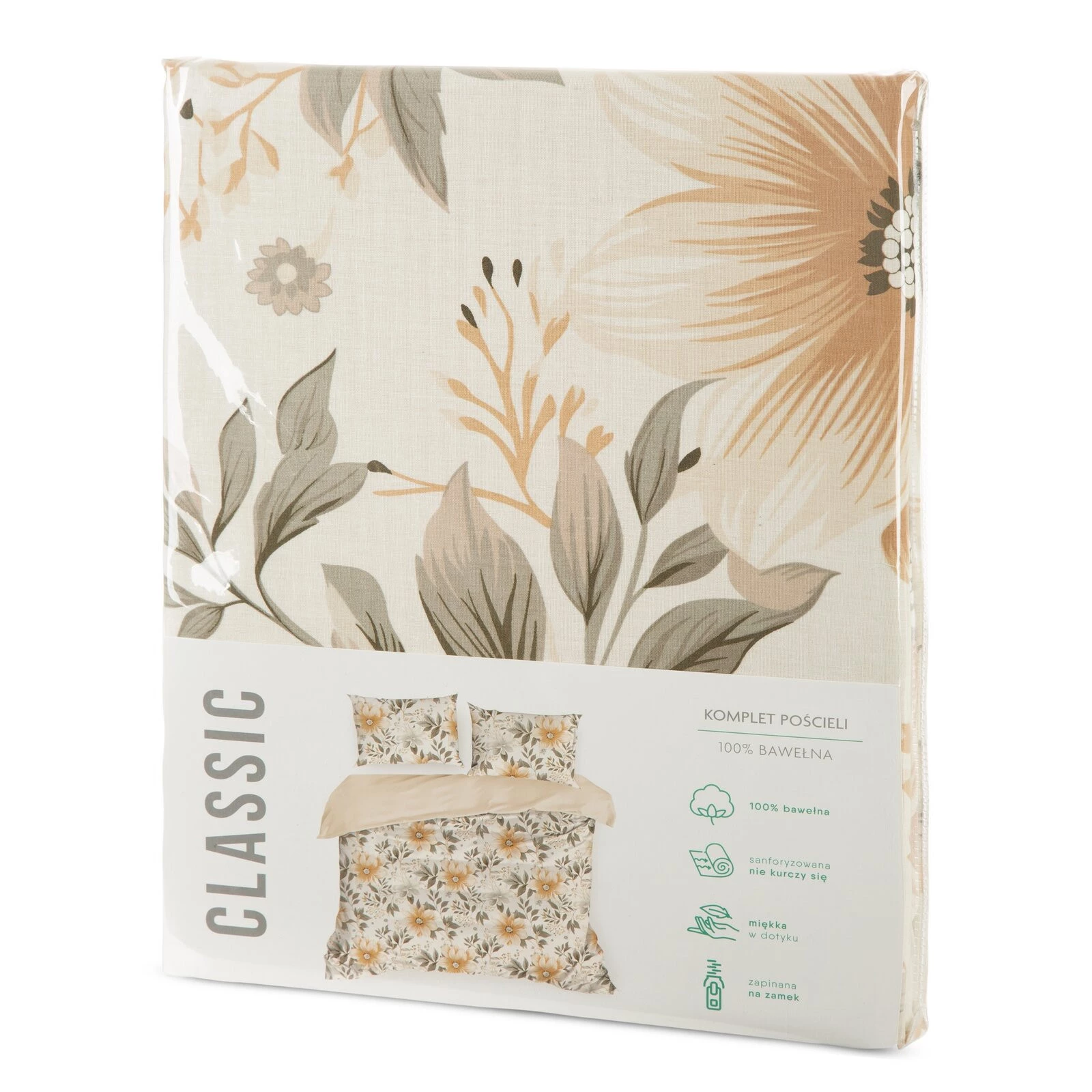 Komplet pościeli bawełnianej z nadrukiem szerokość: 220 cm, długość: 200 cm, kolor: jasnokremowy, Gramatura: 105 GSM, Skład: 100% bawełna