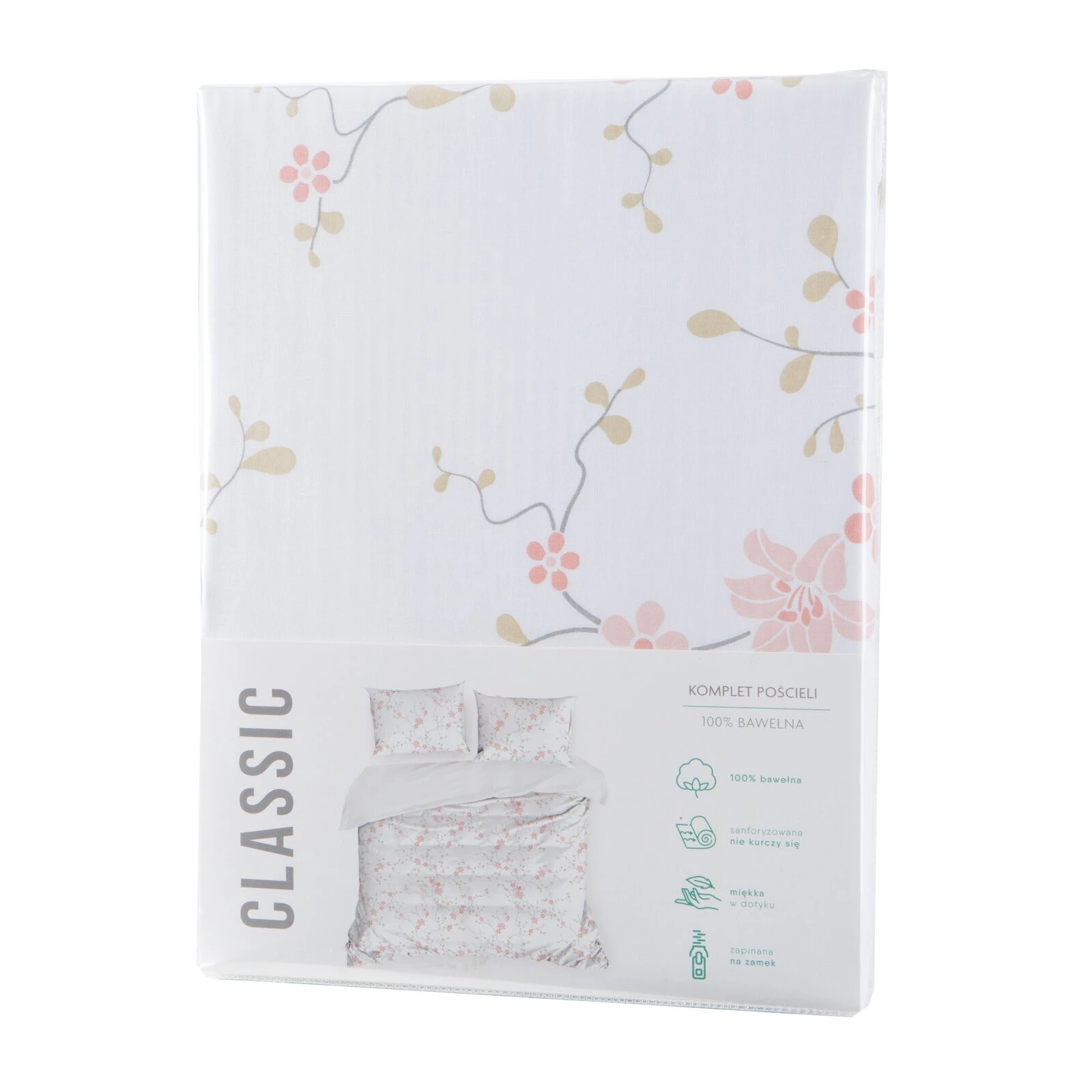 Komplet pościeli bawełnianej z nadrukiem szerokość: 140 cm, długość: 200 cm, kolor: biały, Gramatura: 105 GSM, Skład: 100% bawełna