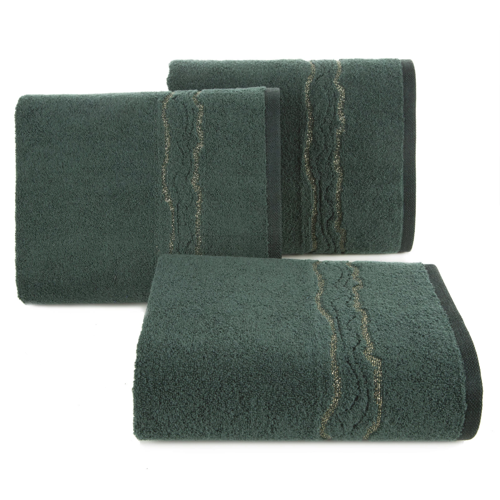 Ręcznik bawełniany z ozdobną bordiurą i błyszczącą nicią szerokość: 30 cm, długość: 50 cm, kolor: ciemnozielony, Gramatura: 500 GSM, Skład: 100% bawełna; część ozdobna: 50% poliester, 50% wiskoza