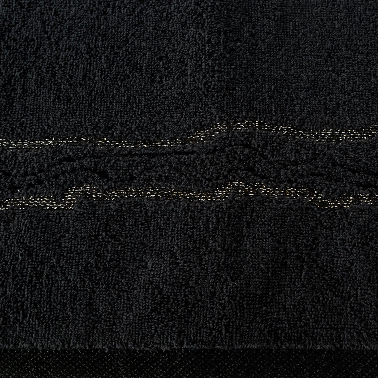 Ręcznik bawełniany z ozdobną bordiurą i błyszczącą nicią szerokość: 50 cm, długość: 90 cm, kolor: czarny, Gramatura: 500 GSM, Skład: 100% bawełna; część ozdobna: 50% poliester, 50% wiskoza