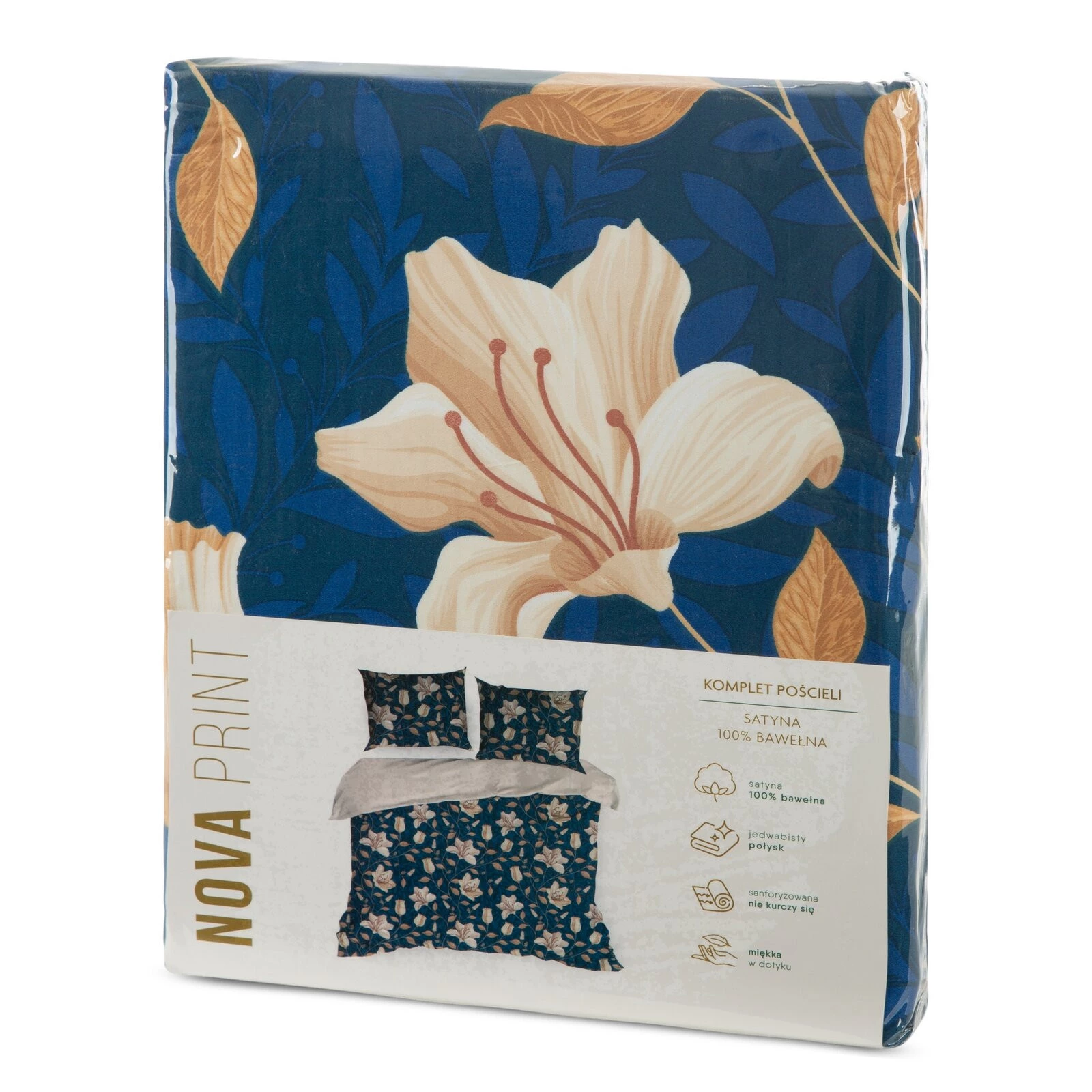Komplet pościeli z satyny bawełnianej z nadrukiem szerokość: 140 cm, długość: 200 cm, kolor: granatowy, Gramatura: 125 GSM, Skład: satyna, 100% bawełna