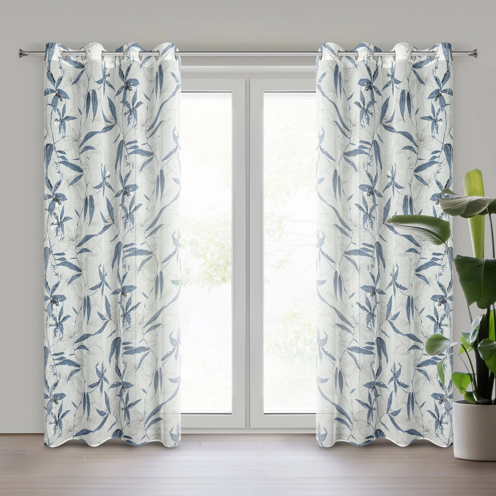 - Zasłona gotowa z motywem kwiatowym oraz błyszczącym nadrukiem szerokość: 140 cm, długość: 250 cm, kolor: naturalny, Gramatura: 75 GSM, Skład: 100% poliester