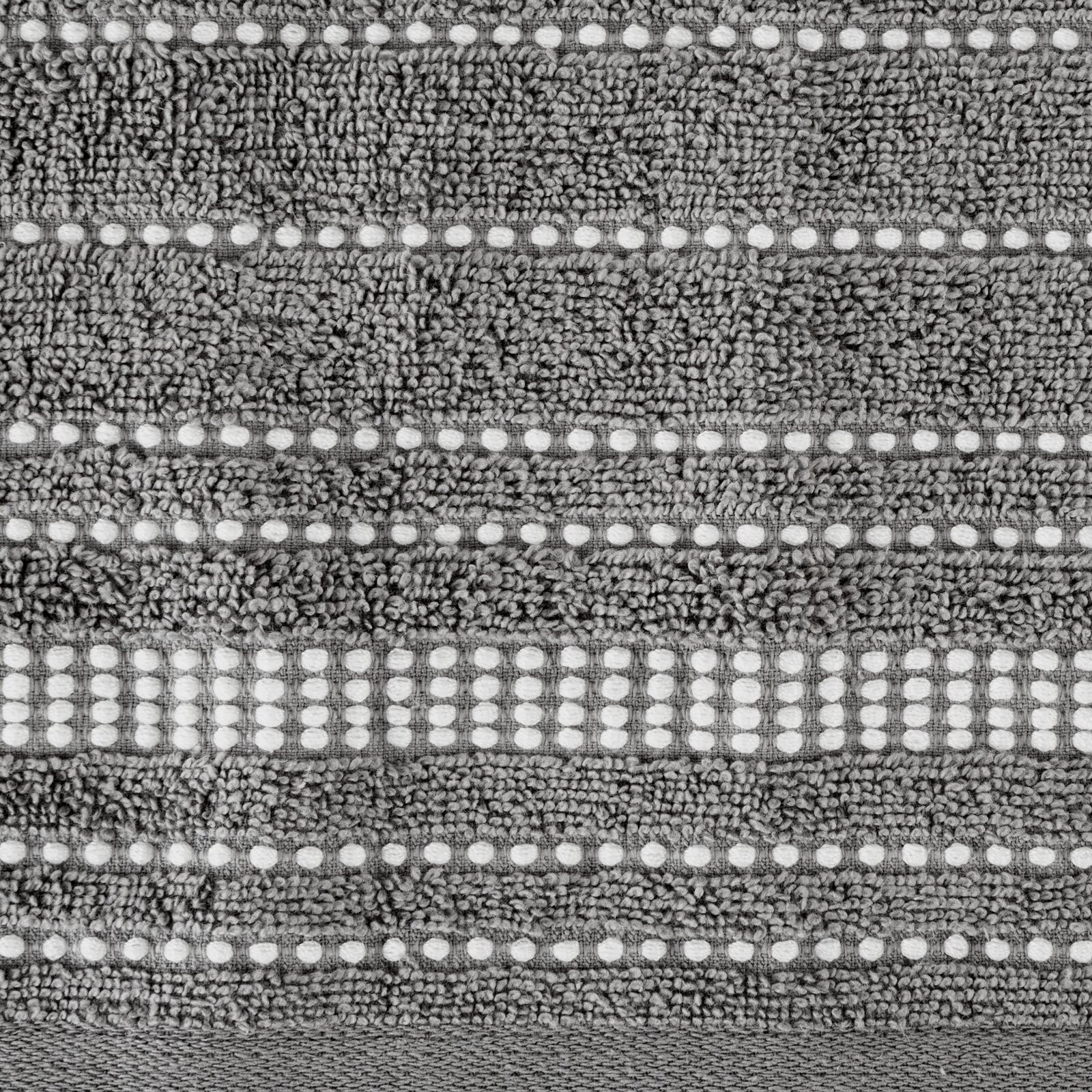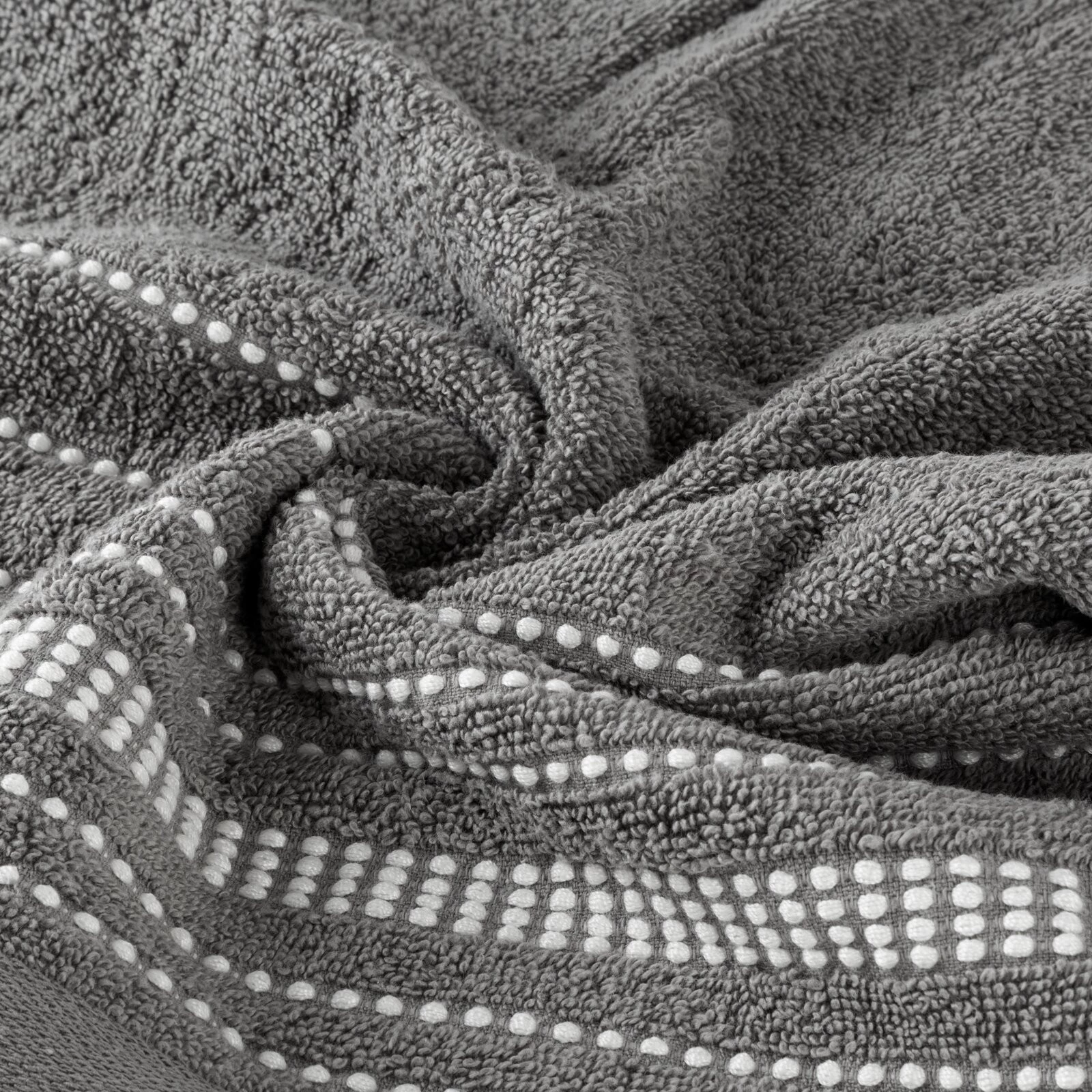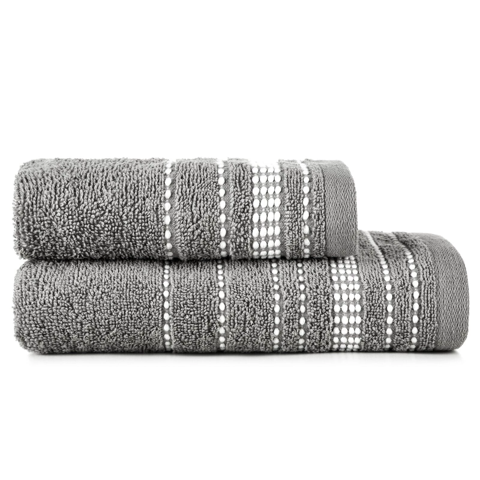 Komplet ręczników z ozdobną bordiurą ze stebnowaniem kolor: stalowy, Gramatura: 500 GSM, Skład: 100% bawełna; część ozdobna: 96% bawełna, 4% poliester