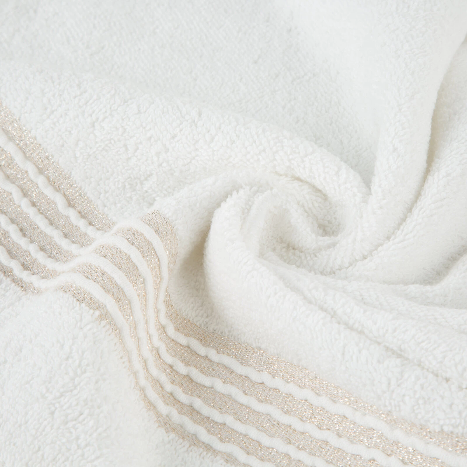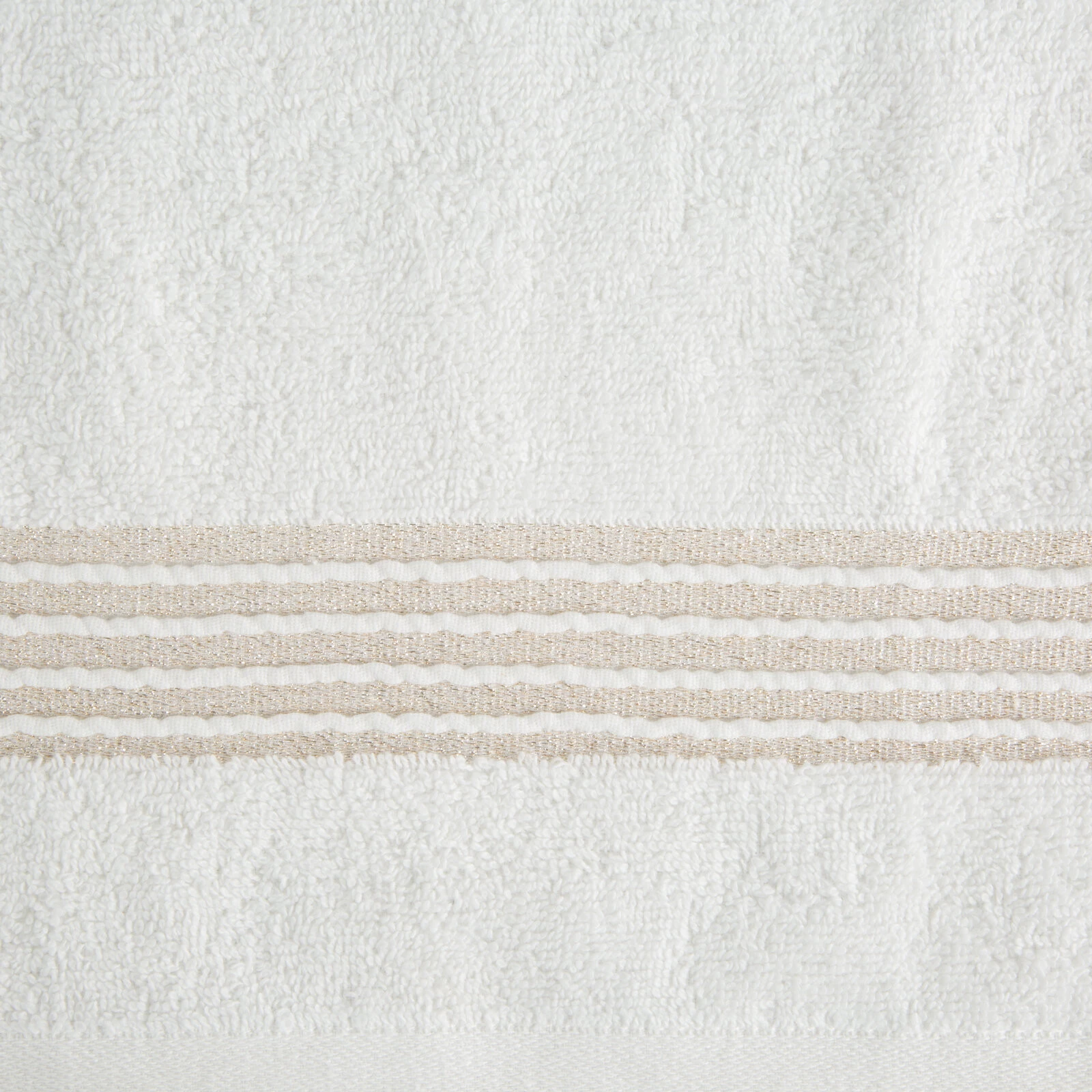 Ręcznik bawełniany z ozdobną bordiurą i błyszczącą nicią szerokość: 30 cm, długość: 50 cm, kolor: biały, Gramatura: 500 GSM, Skład: 100% bawełna; część ozdobna: 50% bawełna, 50% poliester