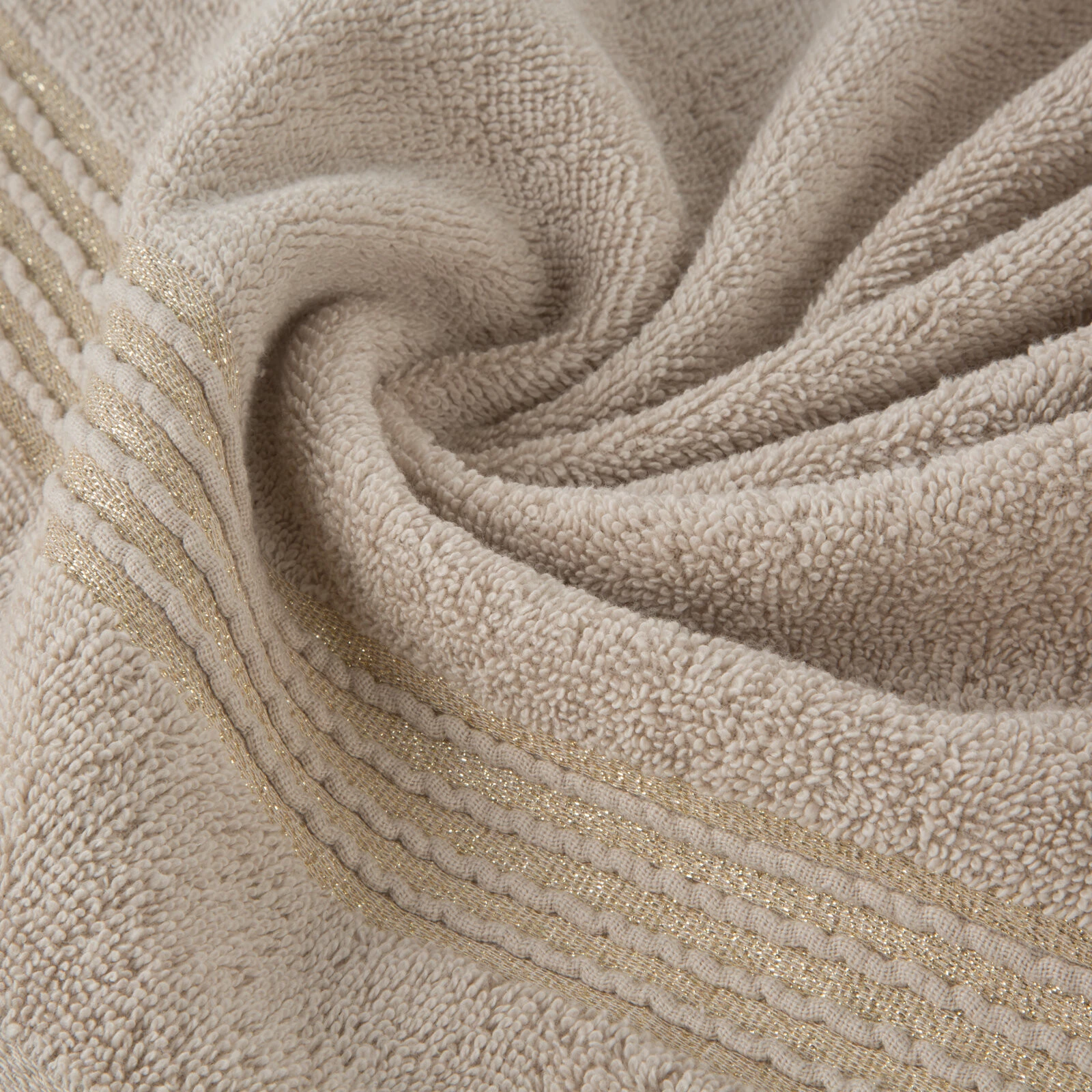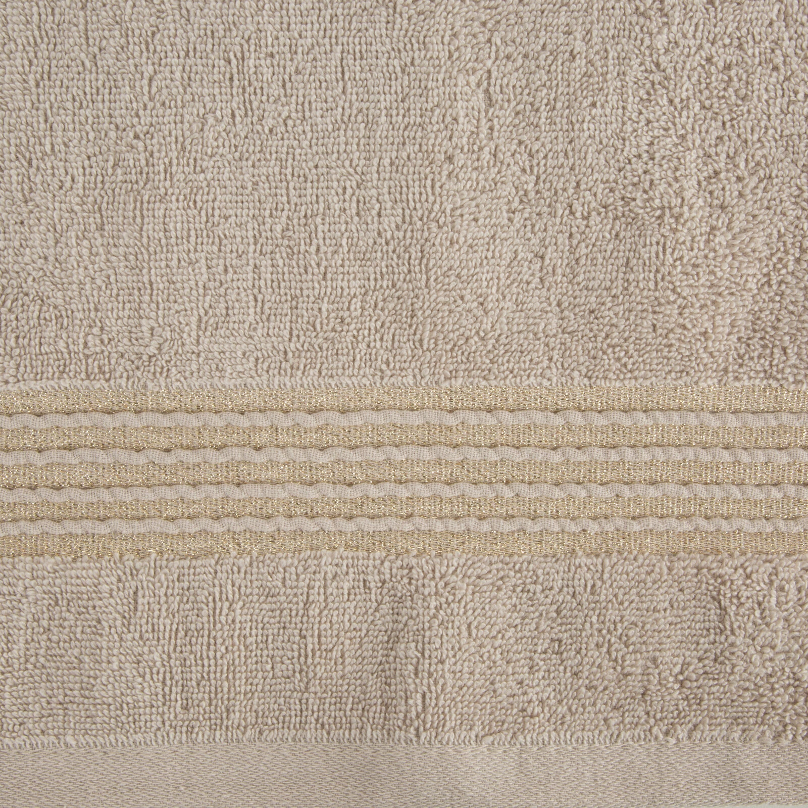 Ręcznik bawełniany z ozdobną bordiurą i błyszczącą nicią szerokość: 30 cm, długość: 50 cm, kolor: beżowy, Gramatura: 500 GSM, Skład: 100% bawełna; część ozdobna: 50% bawełna, 50% poliester