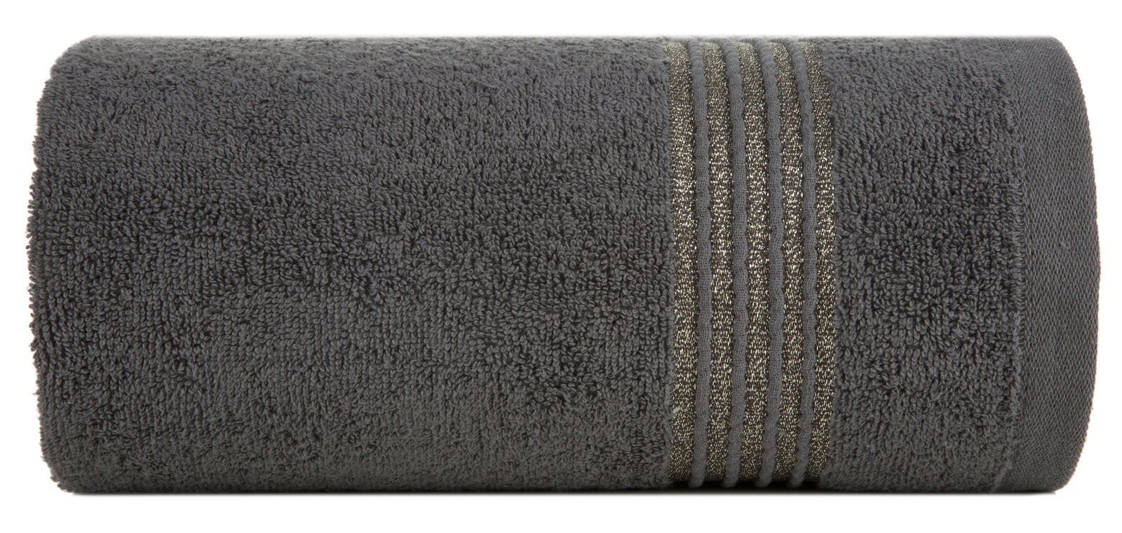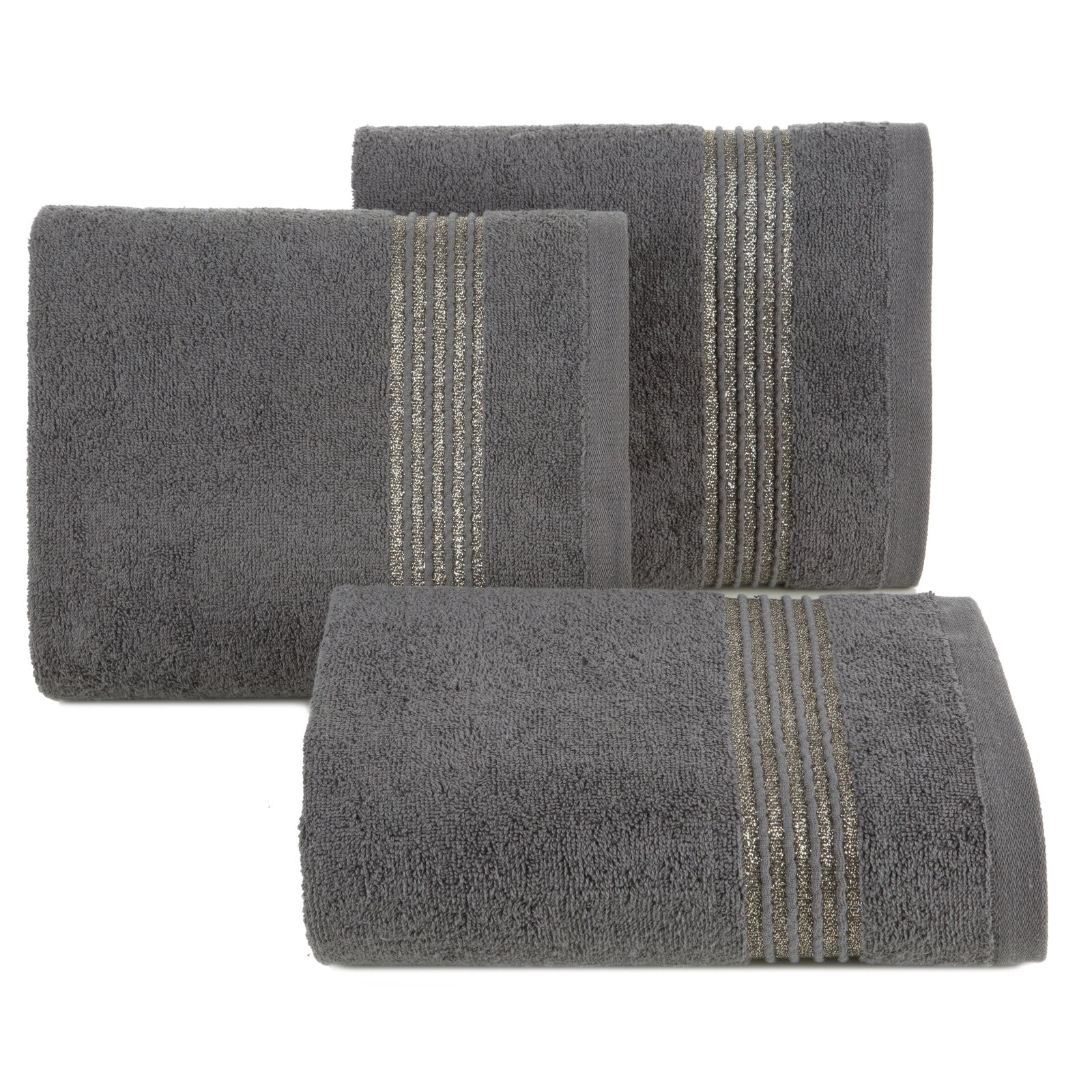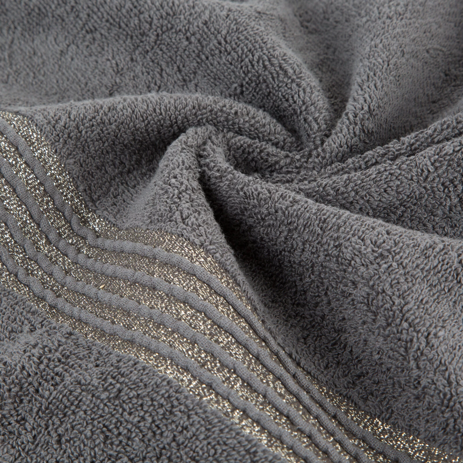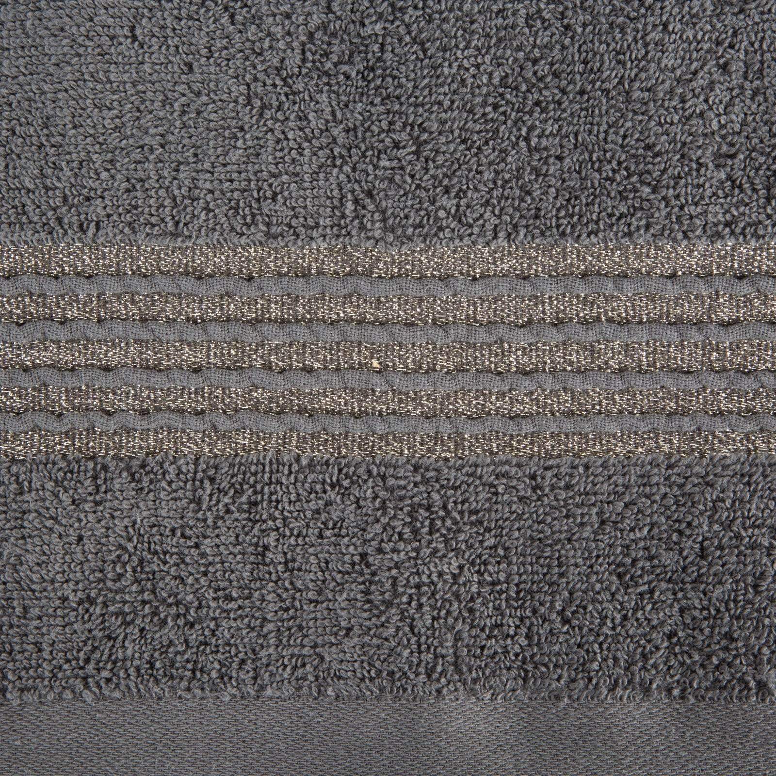 Ręcznik bawełniany z ozdobną bordiurą i błyszczącą nicią szerokość: 30 cm, długość: 50 cm, kolor: grafitowy, Gramatura: 500 GSM, Skład: 100% bawełna; część ozdobna: 50% bawełna, 50% poliester