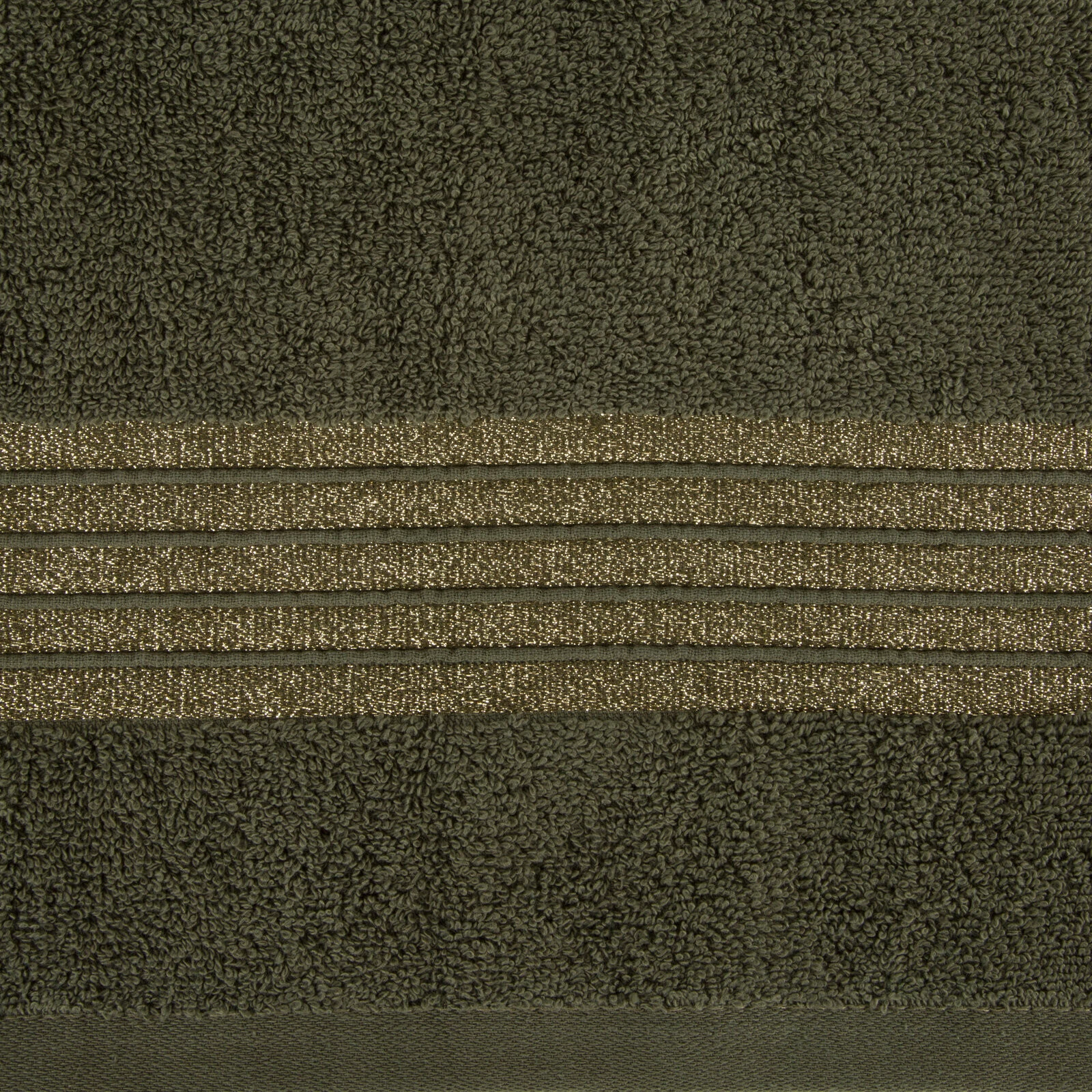 Ręcznik bawełniany z ozdobną bordiurą i błyszczącą nicią szerokość: 50 cm, długość: 90 cm, kolor: oliwkowy, Gramatura: 500 GSM, Skład: 100% bawełna; część ozdobna: 50% bawełna, 50% poliester