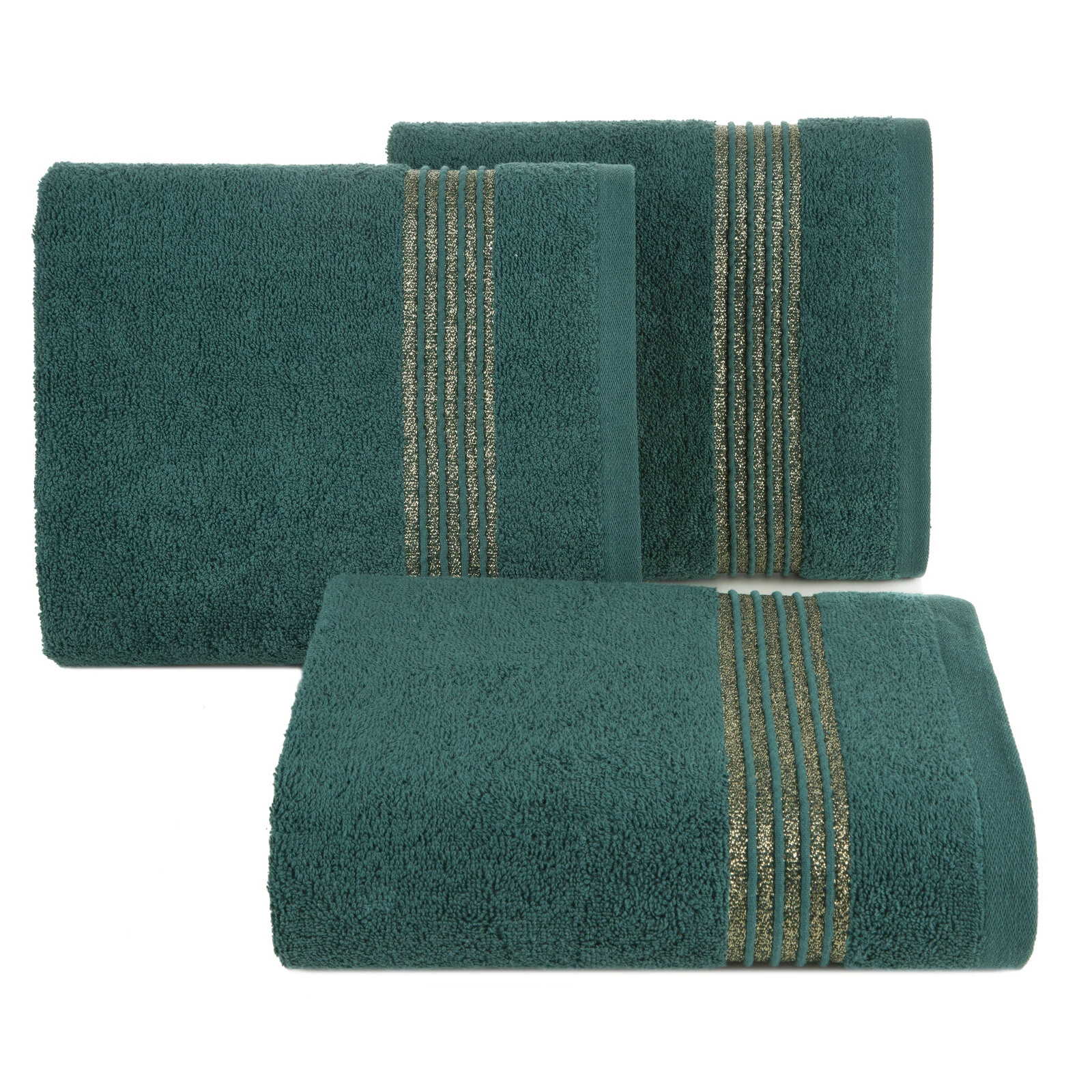 Ręcznik bawełniany z ozdobną bordiurą i błyszczącą nicią szerokość: 30 cm, długość: 50 cm, kolor: ciemnozielony, Gramatura: 500 GSM, Skład: 100% bawełna; część ozdobna: 50% bawełna, 50% poliester