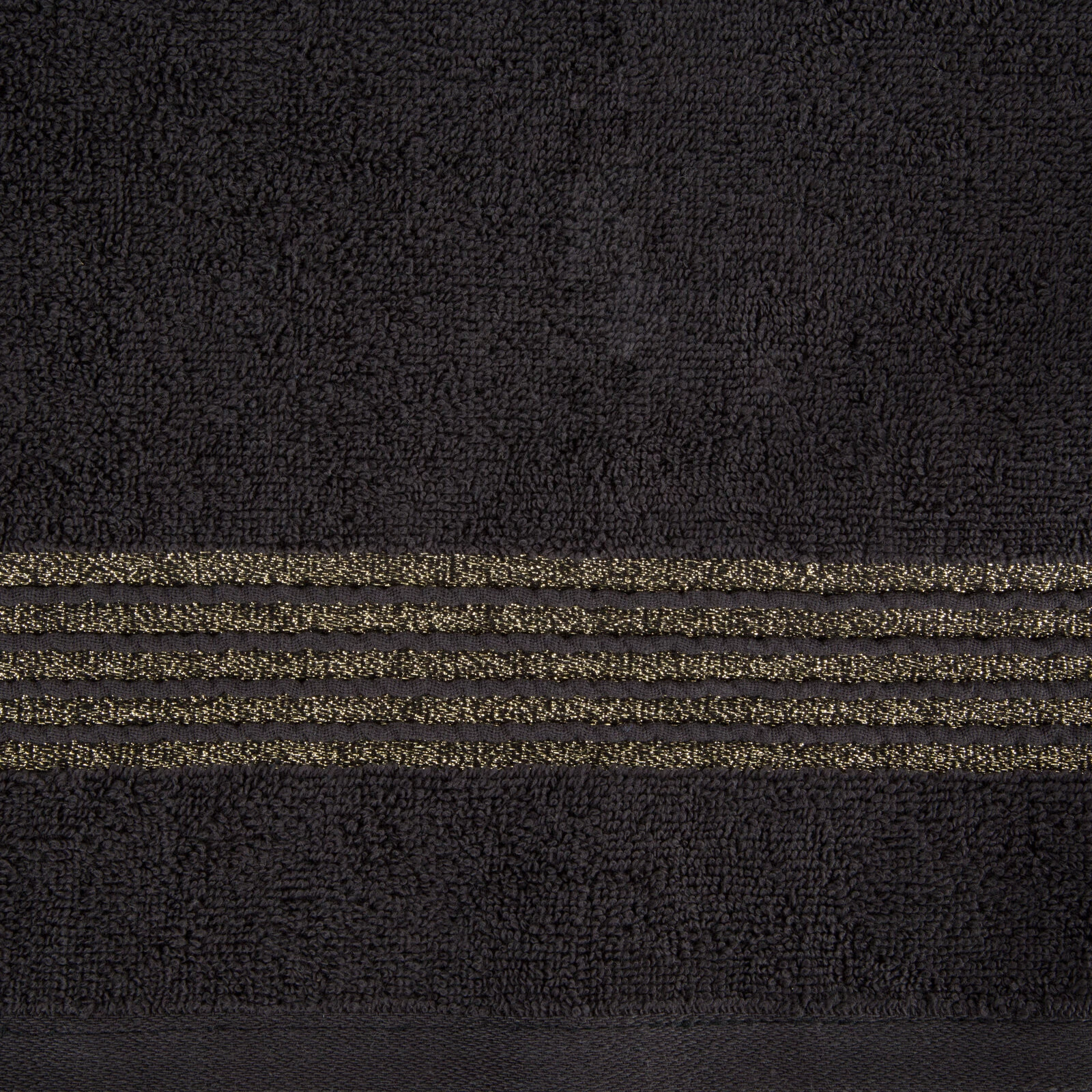 Ręcznik bawełniany z ozdobną bordiurą i błyszczącą nicią szerokość: 50 cm, długość: 90 cm, kolor: czarny, Gramatura: 500 GSM, Skład: 100% bawełna; część ozdobna: 50% bawełna, 50% poliester