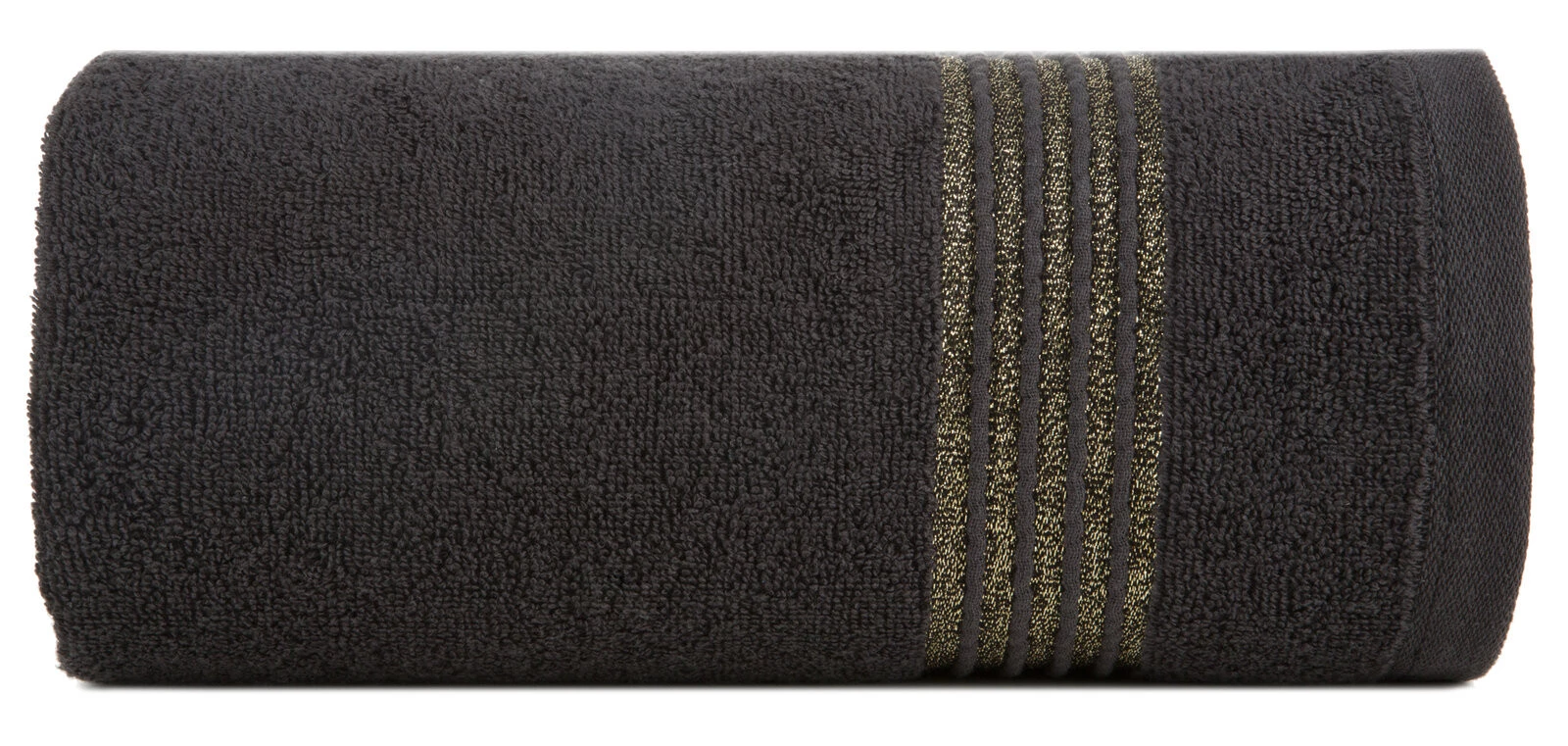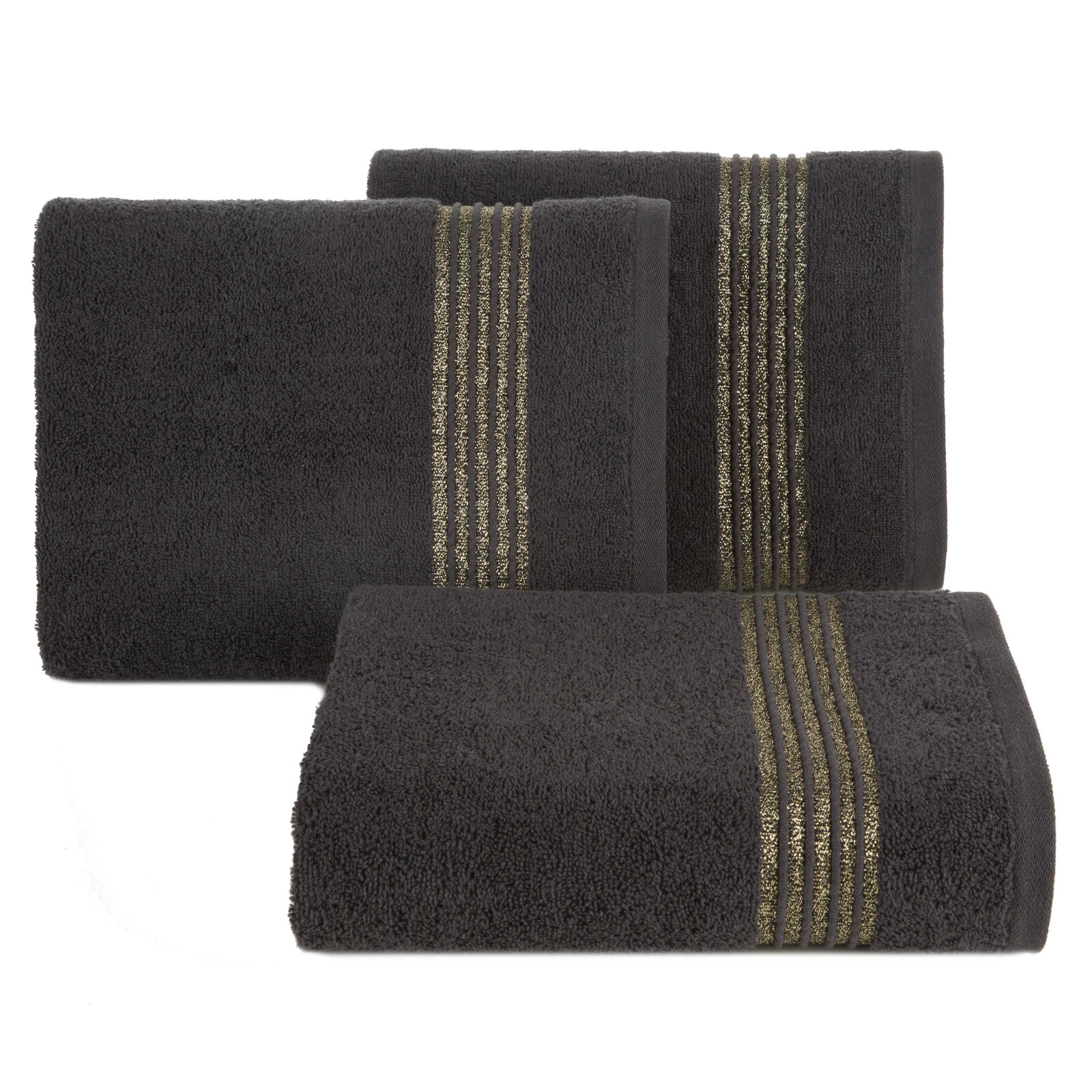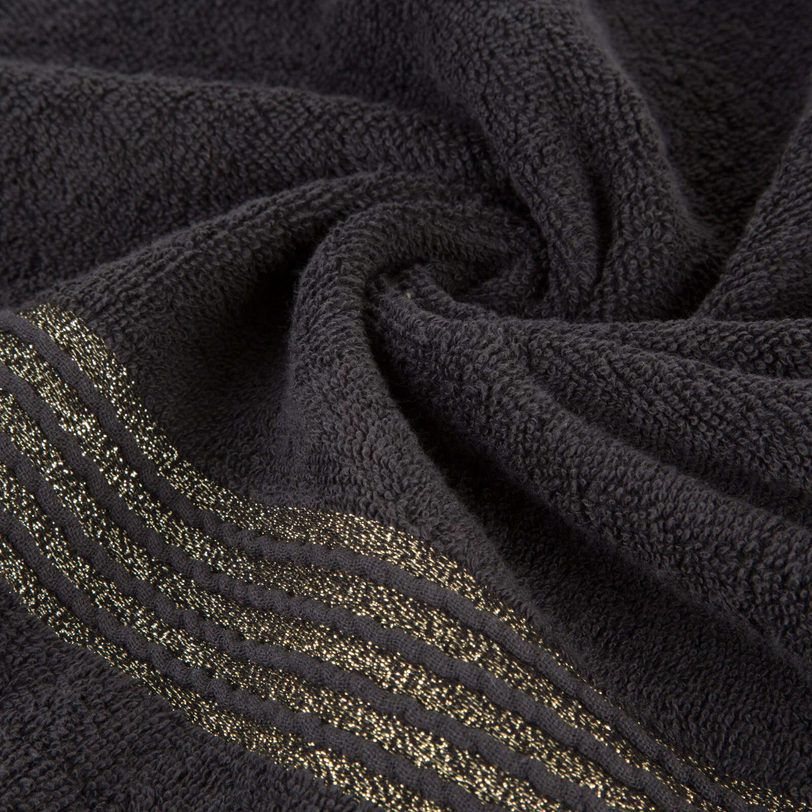 Ręcznik bawełniany z ozdobną bordiurą i błyszczącą nicią szerokość: 70 cm, długość: 140 cm, kolor: czarny, Gramatura: 500 GSM, Skład: 100% bawełna; część ozdobna: 50% bawełna, 50% poliester