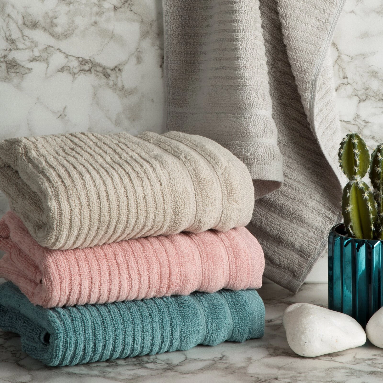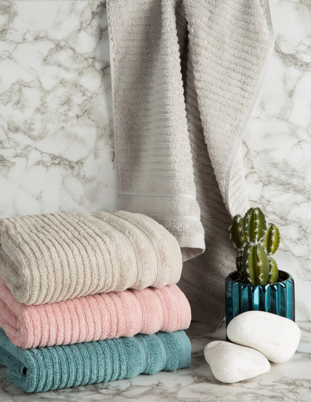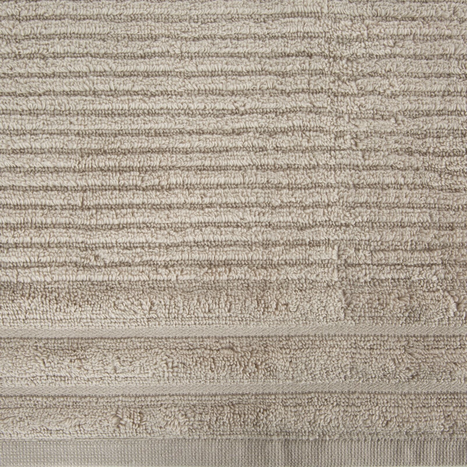 Jednobarwny ręcznik z miękkiej i chłonnej tkaniny bawełnianej o splocie frotte zdobiony kolorową bordiurą w stylu fastrygi. Łatwy w praniu, nie farbuje. szerokość: 30 cm, długość: 50 cm, kolor: beżowy, Gramatura: 400 GSM, Skład: 100% bawełna
