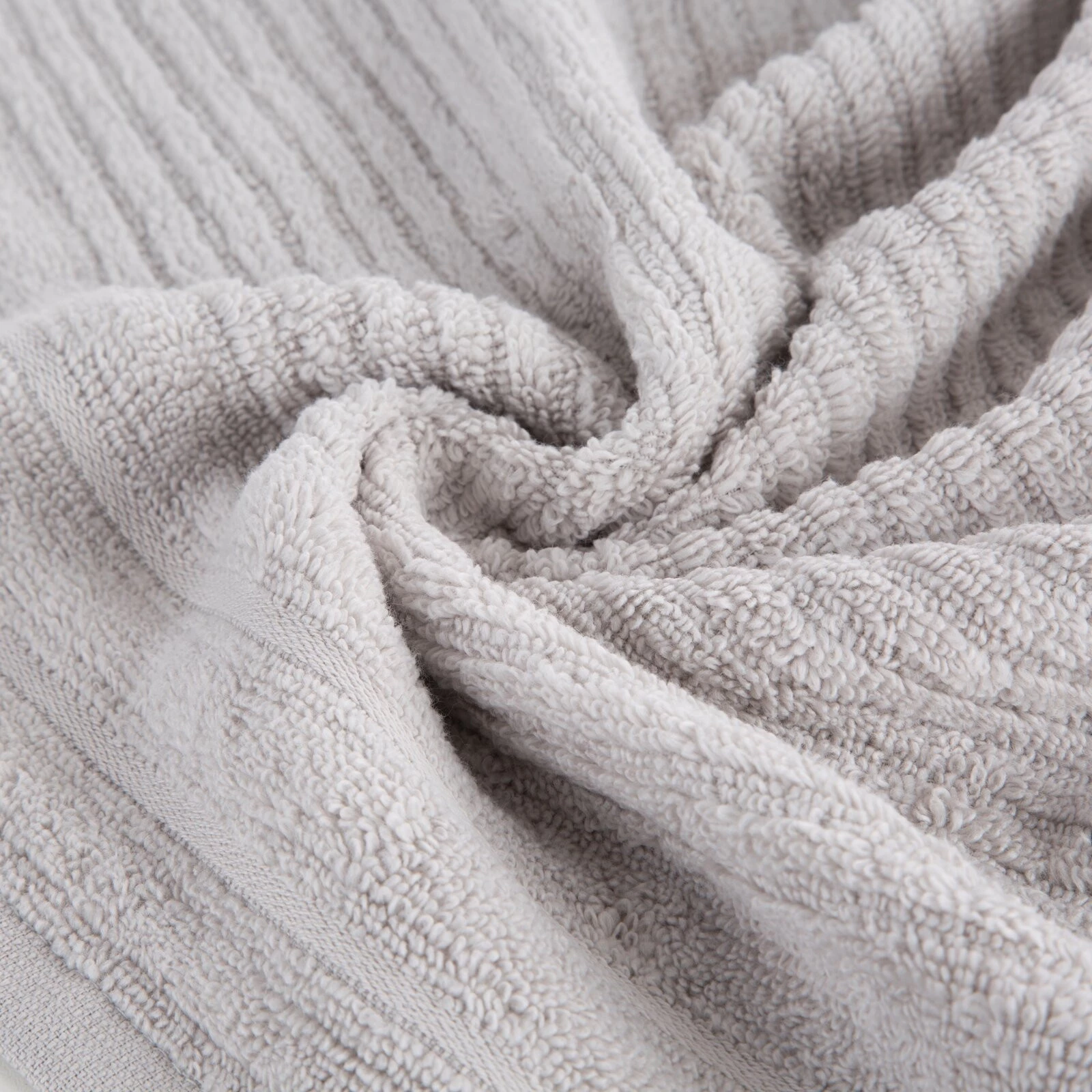 Jednobarwny ręcznik z miękkiej i chłonnej tkaniny bawełnianej o splocie frotte zdobiony kolorową bordiurą w stylu fastrygi. Łatwy w praniu, nie farbuje. szerokość: 50 cm, długość: 90 cm, kolor: srebrny, Gramatura: 400 GSM, Skład: 100% bawełna