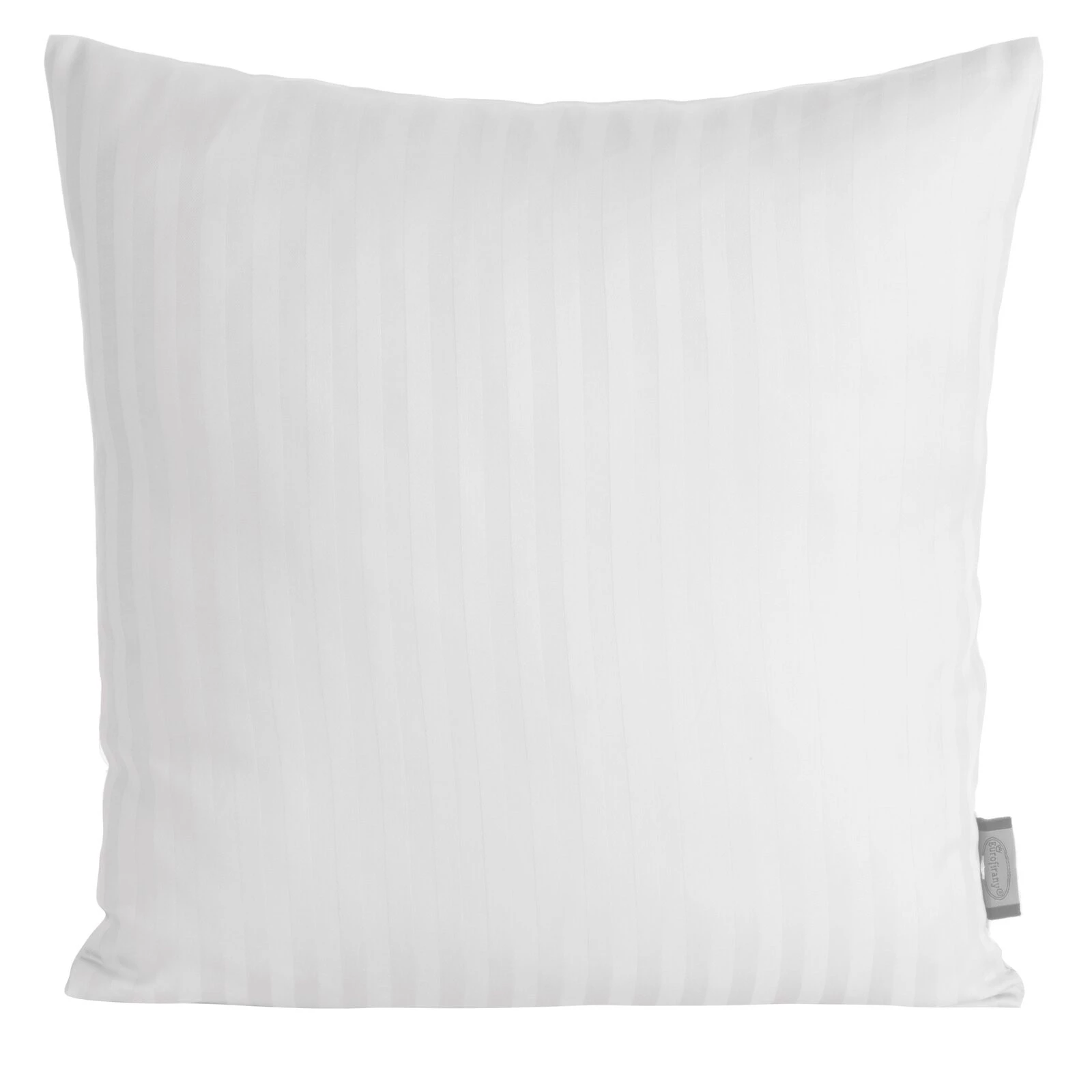 Jednokolorowa, gładka poszewka na poduszkę dekoracyjną lub poduszkę do łóżeczka dziecięcego. Uszyta z miękkiej i oddychającej bawełny, zapinana na zamek zipp. szerokość: 40 cm, długość: 40 cm, kolor: biały, Gramatura: 125 GSM, Skład: satyna, 100% bawełna