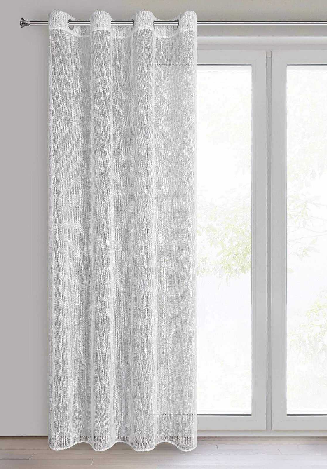Firana gotowa o strukturze siatki szerokość: 140 cm, długość: 250 cm, kolor: biały, Gramatura: 110 GSM, Skład: 100% poliester