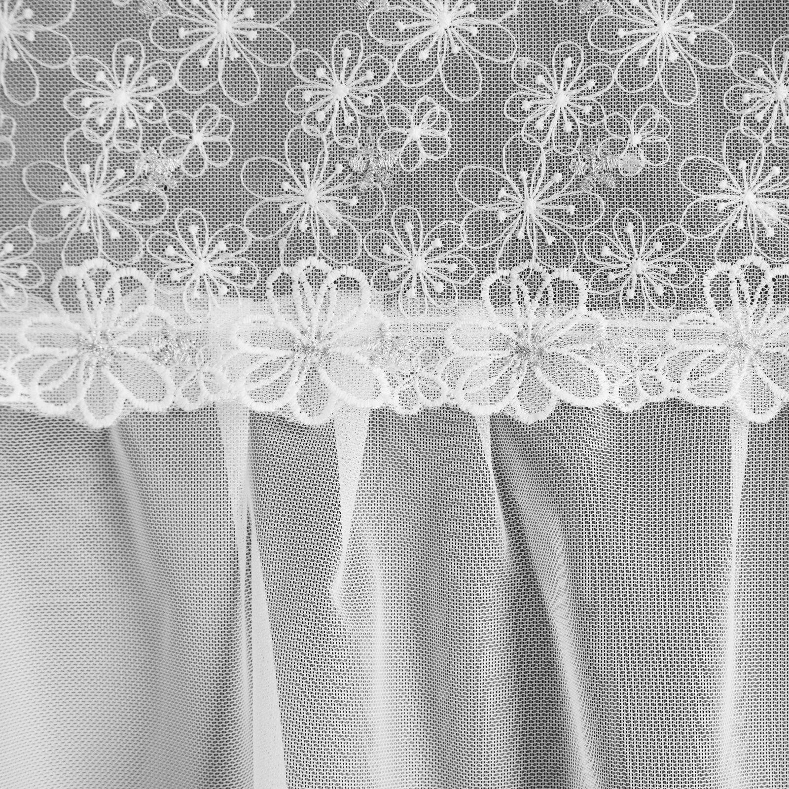 - Firana gotowa zdobiona kwiatowym haftem z błyszczącej nici szerokość: 140 cm, długość: 250 cm, kolor: biały, Gramatura: 70 GSM, Skład: 100% poliester