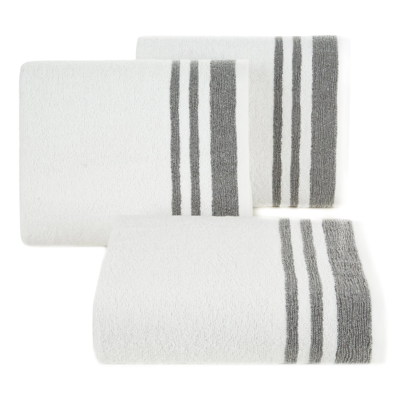 Ręcznik bawełniany z ozdobną bordiurą szerokość: 70 cm, długość: 140 cm, kolor: biały, Gramatura: 500 GSM, Skład: 100% bawełna; część ozdobna: 95% bawełna, 5% poliester