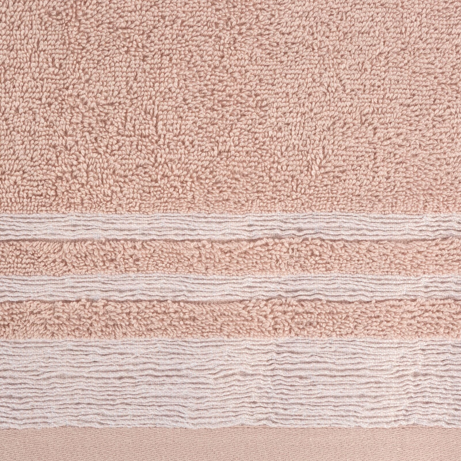 Ręcznik bawełniany z ozdobną bordiurą szerokość: 30 cm, długość: 50 cm, kolor: pudrowy róż, Gramatura: 500 GSM, Skład: 100% bawełna; część ozdobna: 95% bawełna, 5% poliester