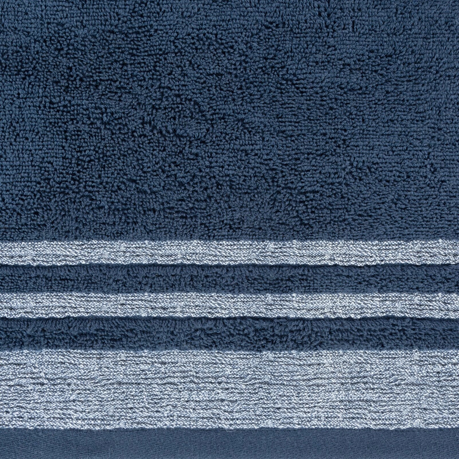 Ręcznik bawełniany z ozdobną bordiurą szerokość: 50 cm, długość: 90 cm, kolor: granatowy, Gramatura: 500 GSM, Skład: 100% bawełna; część ozdobna: 95% bawełna, 5% poliester