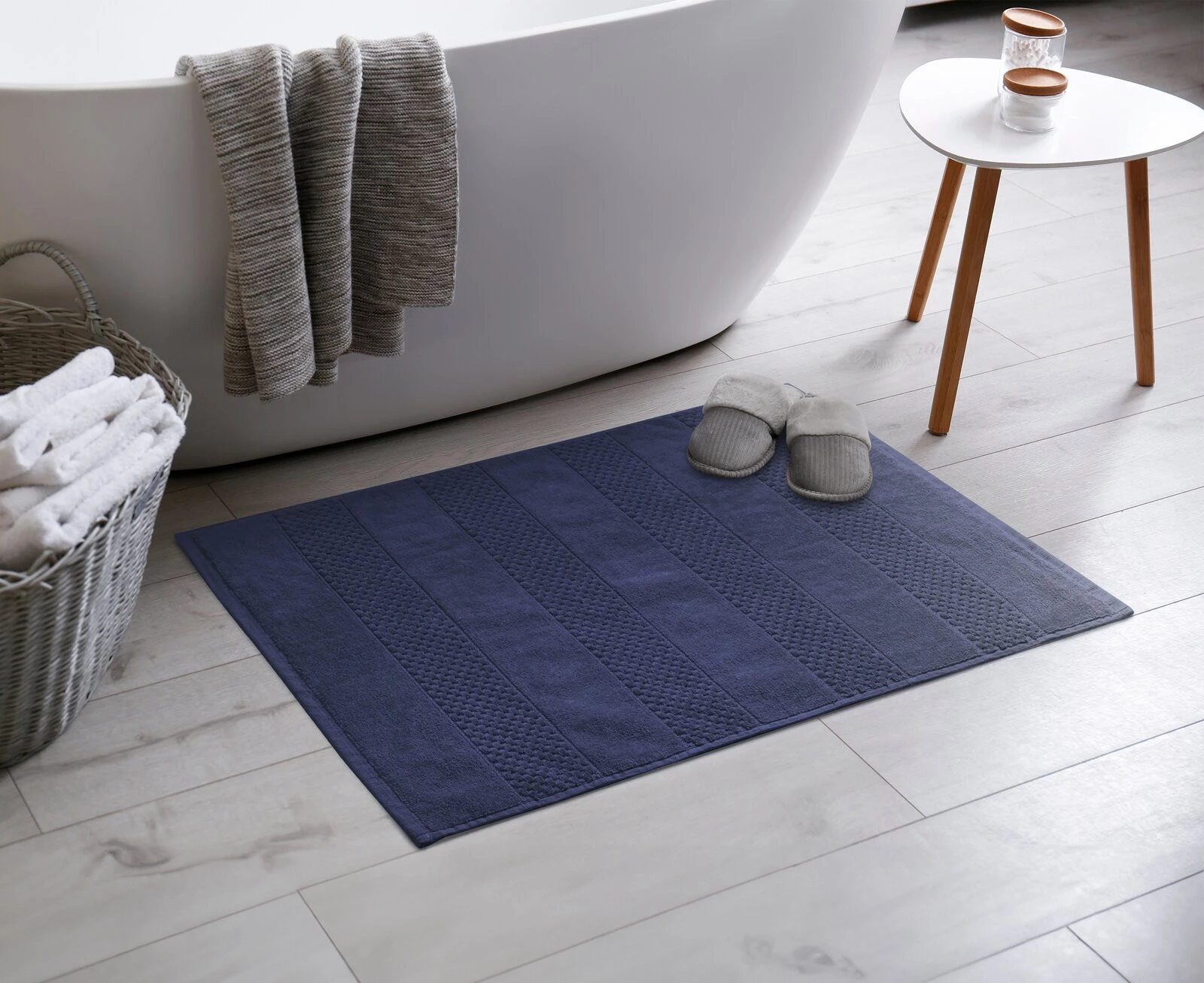 - Dywanik łazienkowy szerokość: 60 cm, długość: 90 cm, kolor: granatowy, Gramatura: 750 GSM, Skład: 98% bawełna, 2% wiskoza