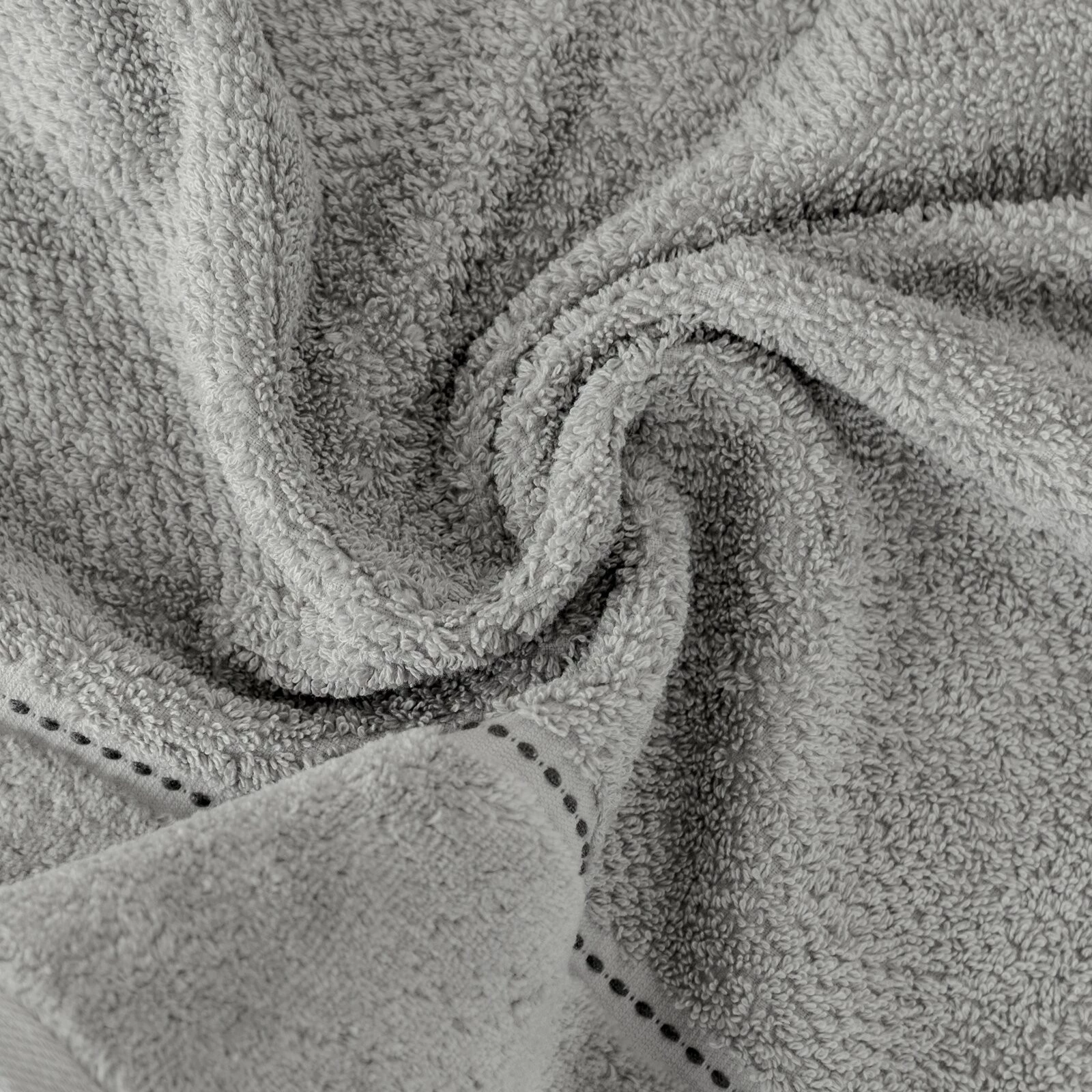 Ręcznik z welurową bordiurą szerokość: 50 cm, długość: 90 cm, kolor: szary, Gramatura: 500 GSM, Skład: 100% bawełna; część ozdobna: 55% bawełna, 45% poliester