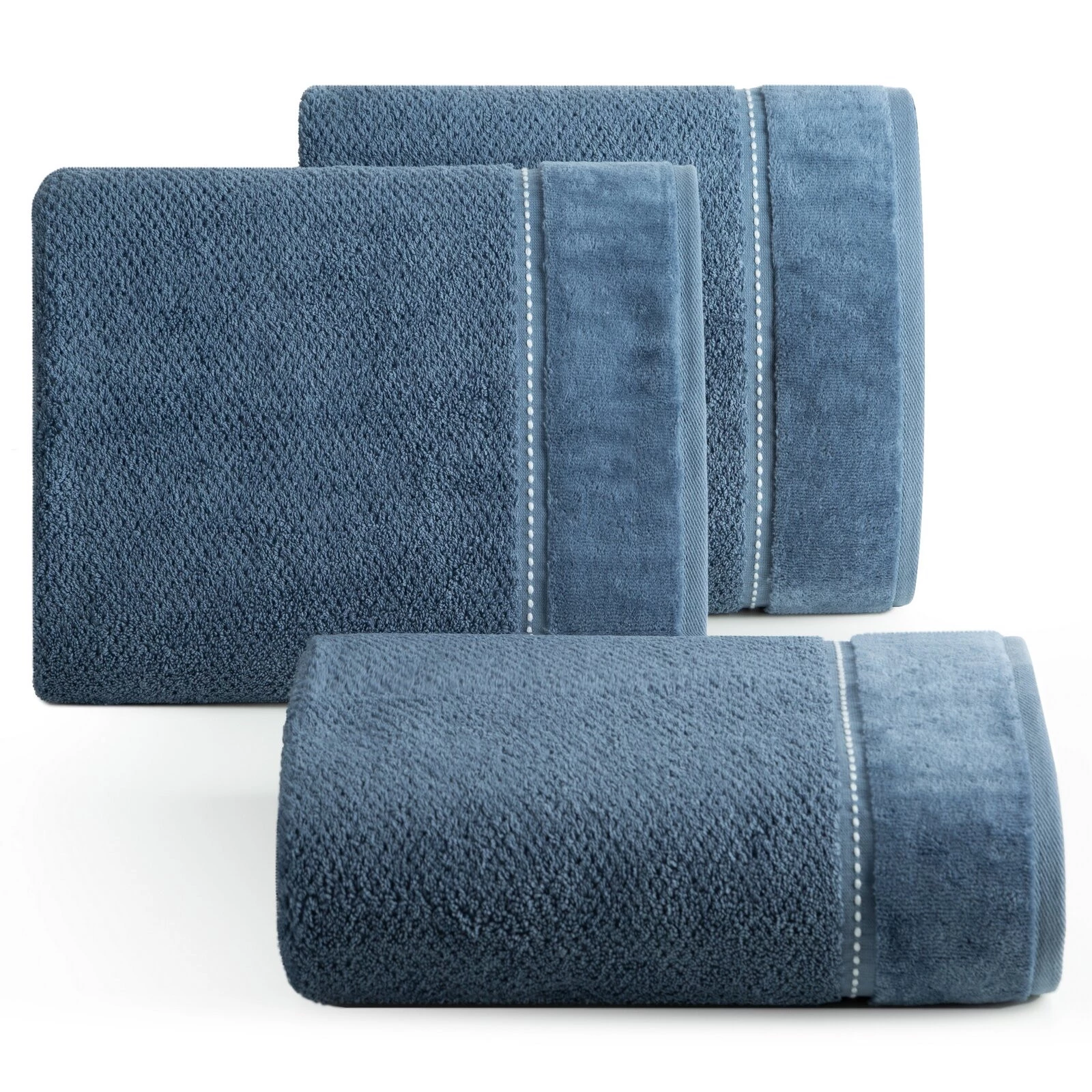 Ręcznik z welurową bordiurą szerokość: 50 cm, długość: 90 cm, kolor: niebieski, Gramatura: 500 GSM, Skład: 100% bawełna; część ozdobna: 55% bawełna, 45% poliester
