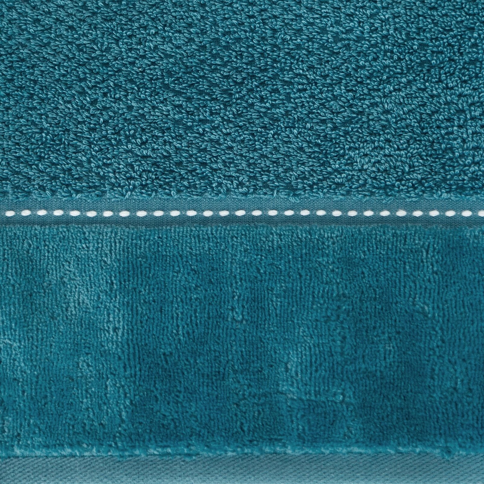 Ręcznik z welurową bordiurą szerokość: 70 cm, długość: 140 cm, kolor: turkusowy, Gramatura: 500 GSM, Skład: 100% bawełna; część ozdobna: 55% bawełna, 45% poliester