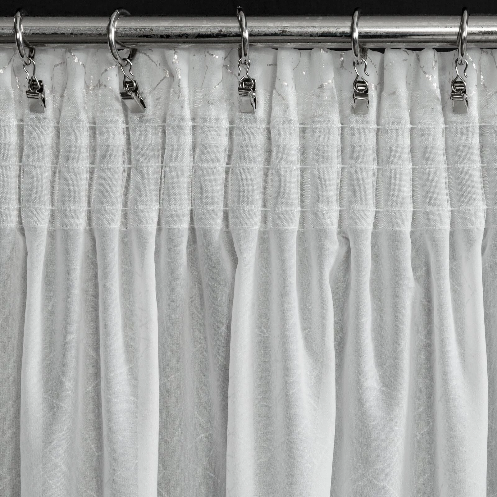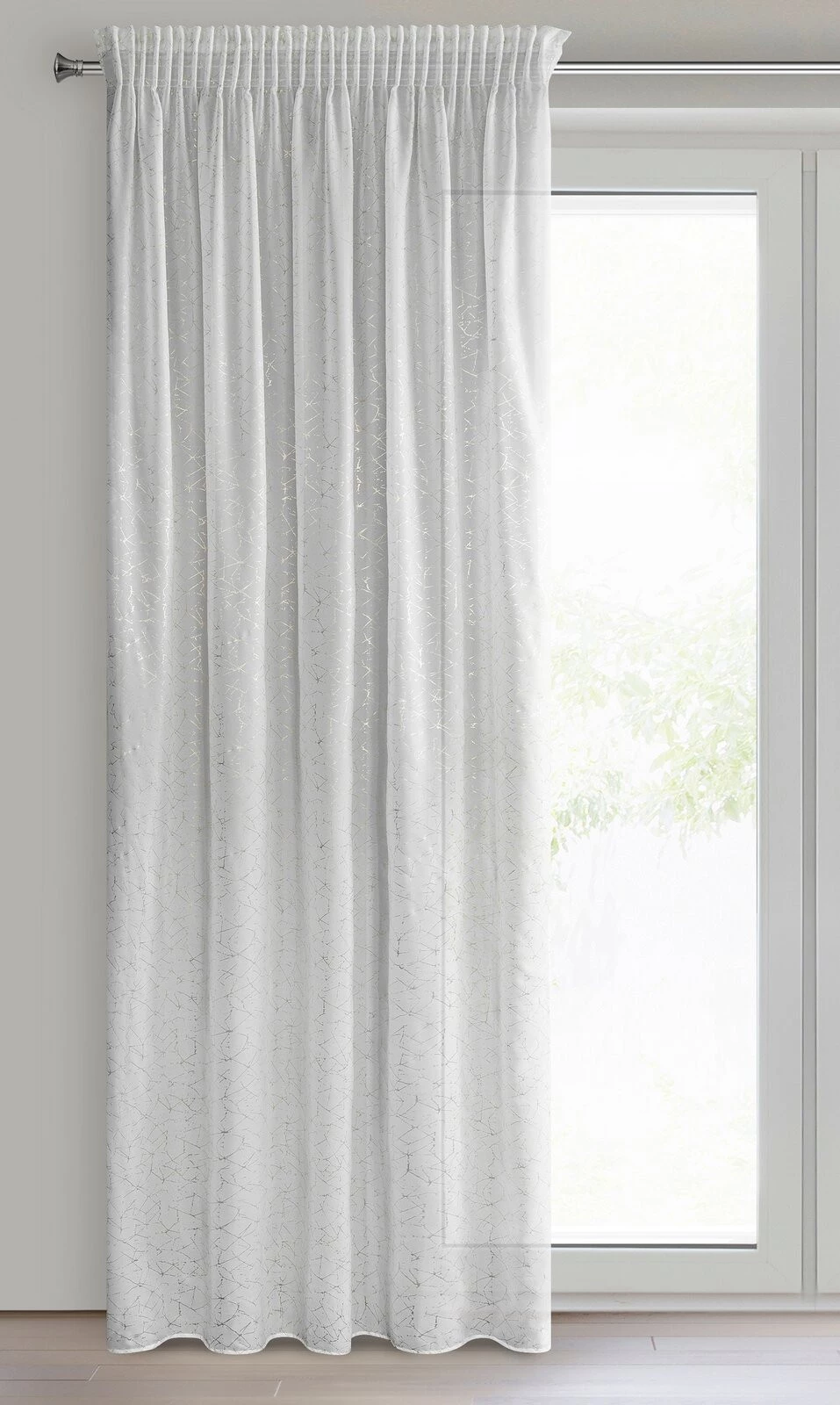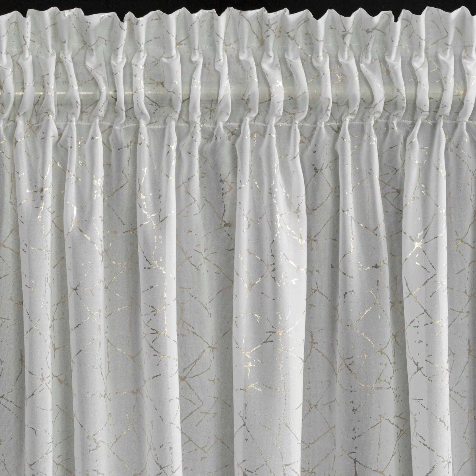 Firana gotowa z błyszczącym nadrukiem szerokość: 140 cm, długość: 270 cm, kolor: biały, Gramatura: 60 GSM, Skład: 100% poliester