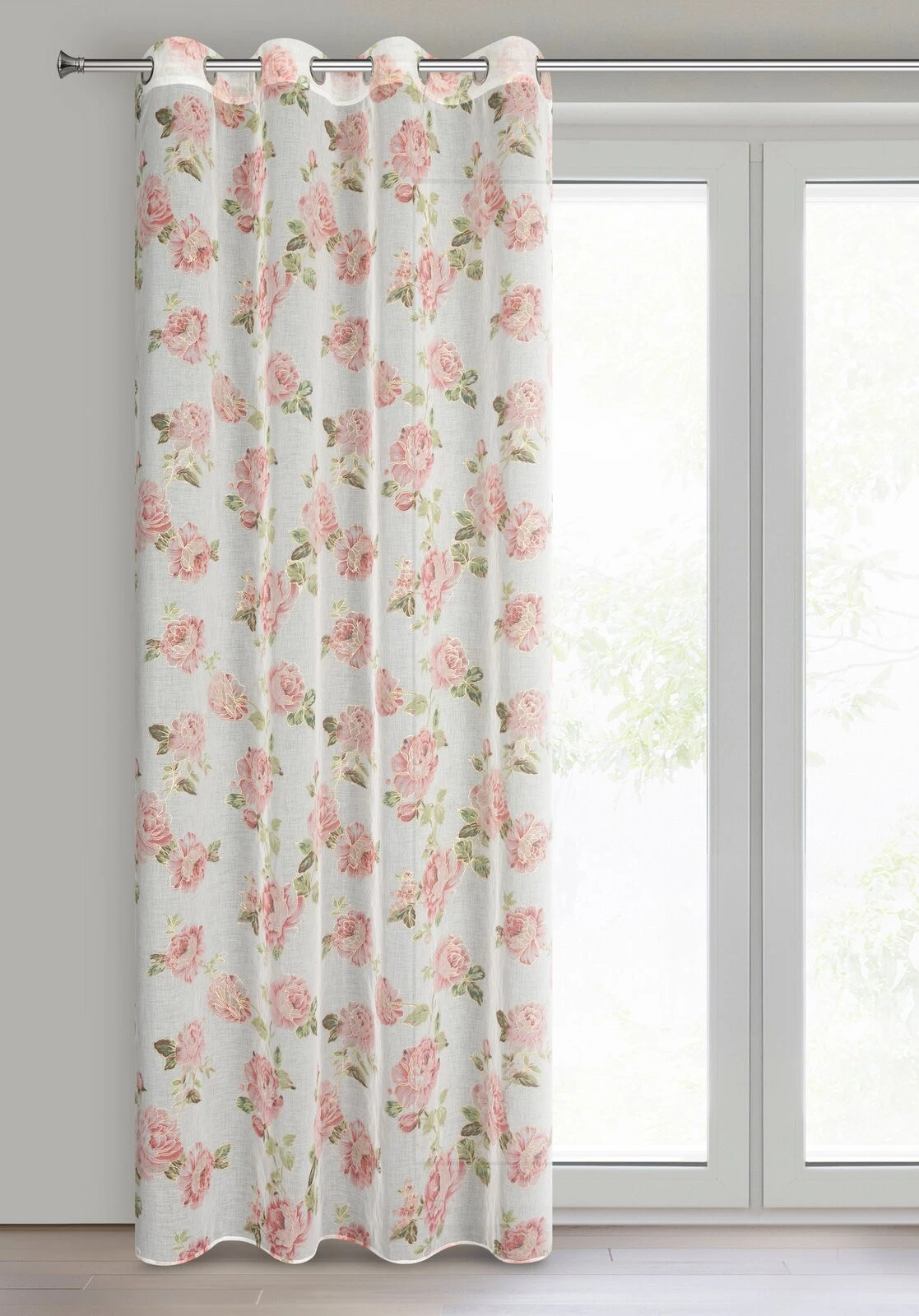 Zasłona z motywem botanicznym z błyszczącym nadrukiem szerokość: 140 cm, długość: 250 cm, kolor: biały, Gramatura: 70 GSM, Skład: 100% poliester