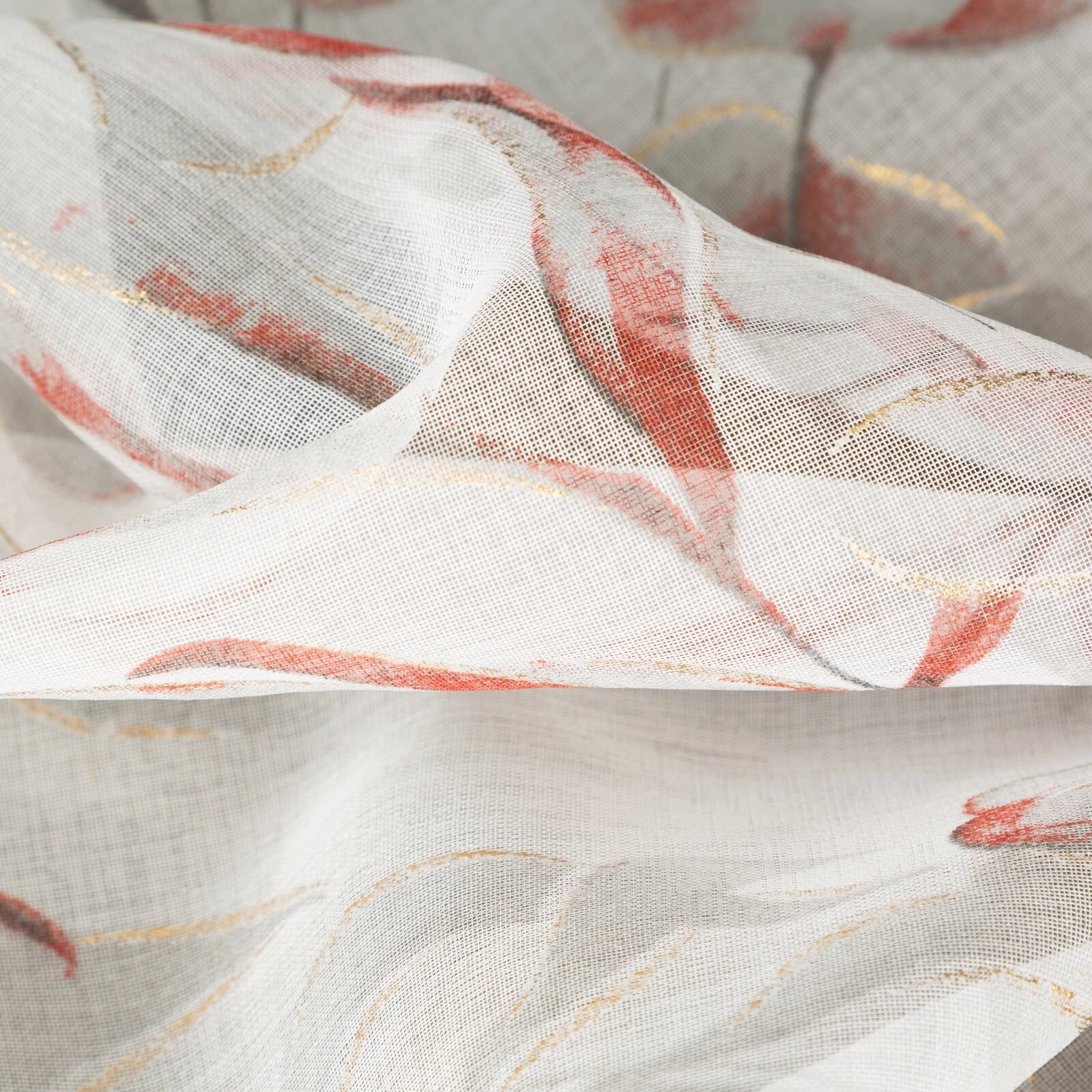 Zasłona z motywem botanicznym z błyszczącym nadrukiem szerokość: 140 cm, długość: 250 cm, kolor: biały, Gramatura: 70 GSM, Skład: 100% poliester