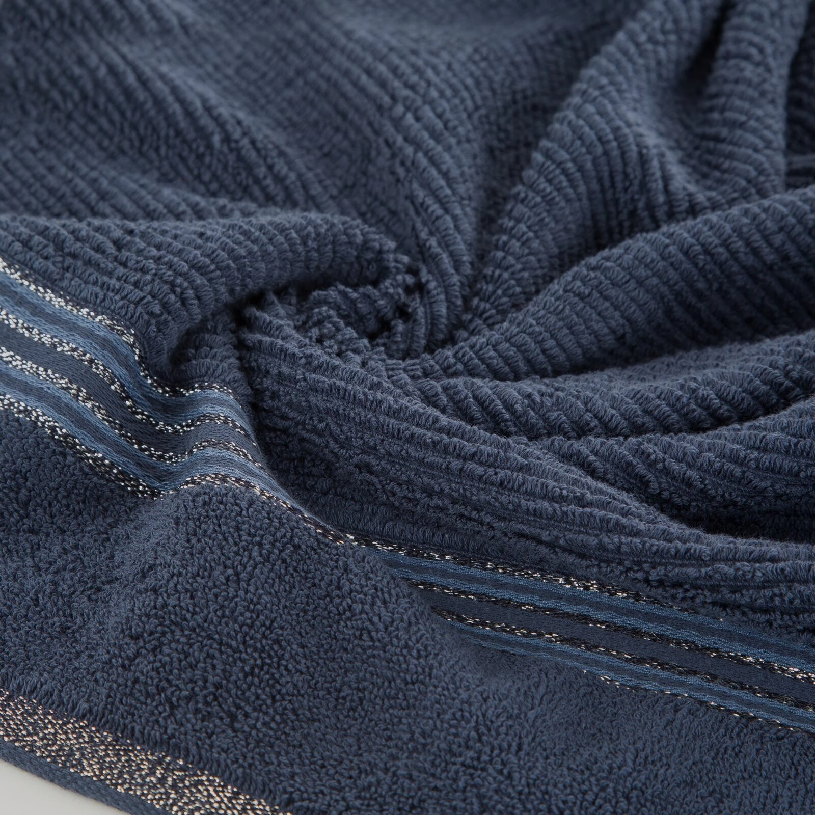 Bardzo puszysty i wyjątkowo chłonny ręcznik z bawełny frotte o strukturze delikatnych prążków. Bordiura w ciemniejszym kolorze z dodatkiem lśniącej nitki. szerokość: 50 cm, długość: 90 cm, kolor: turkusowy, Gramatura: 530 GSM, Skład: 100% bawełna; część ozdobna: 97% bawełna, 3% poliester