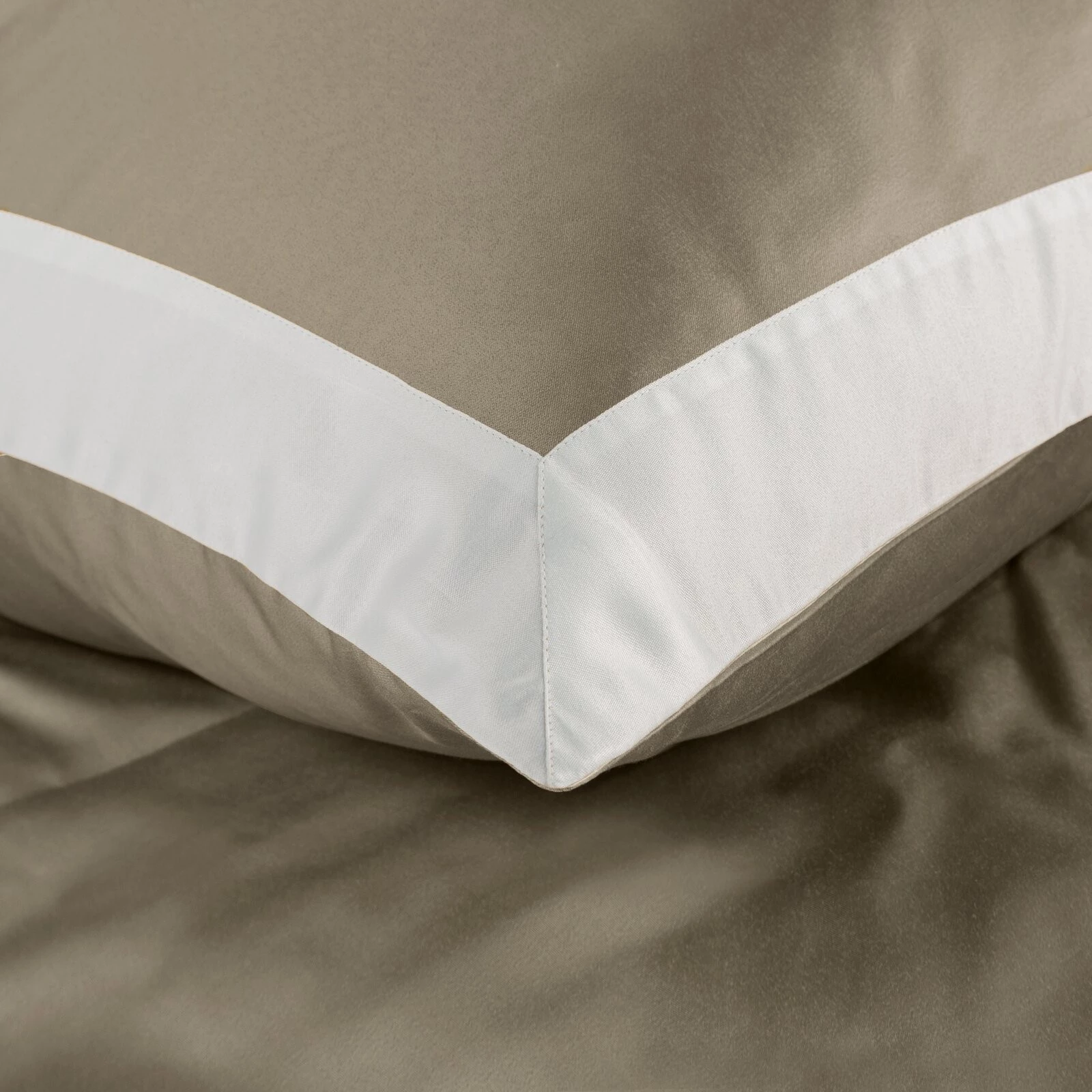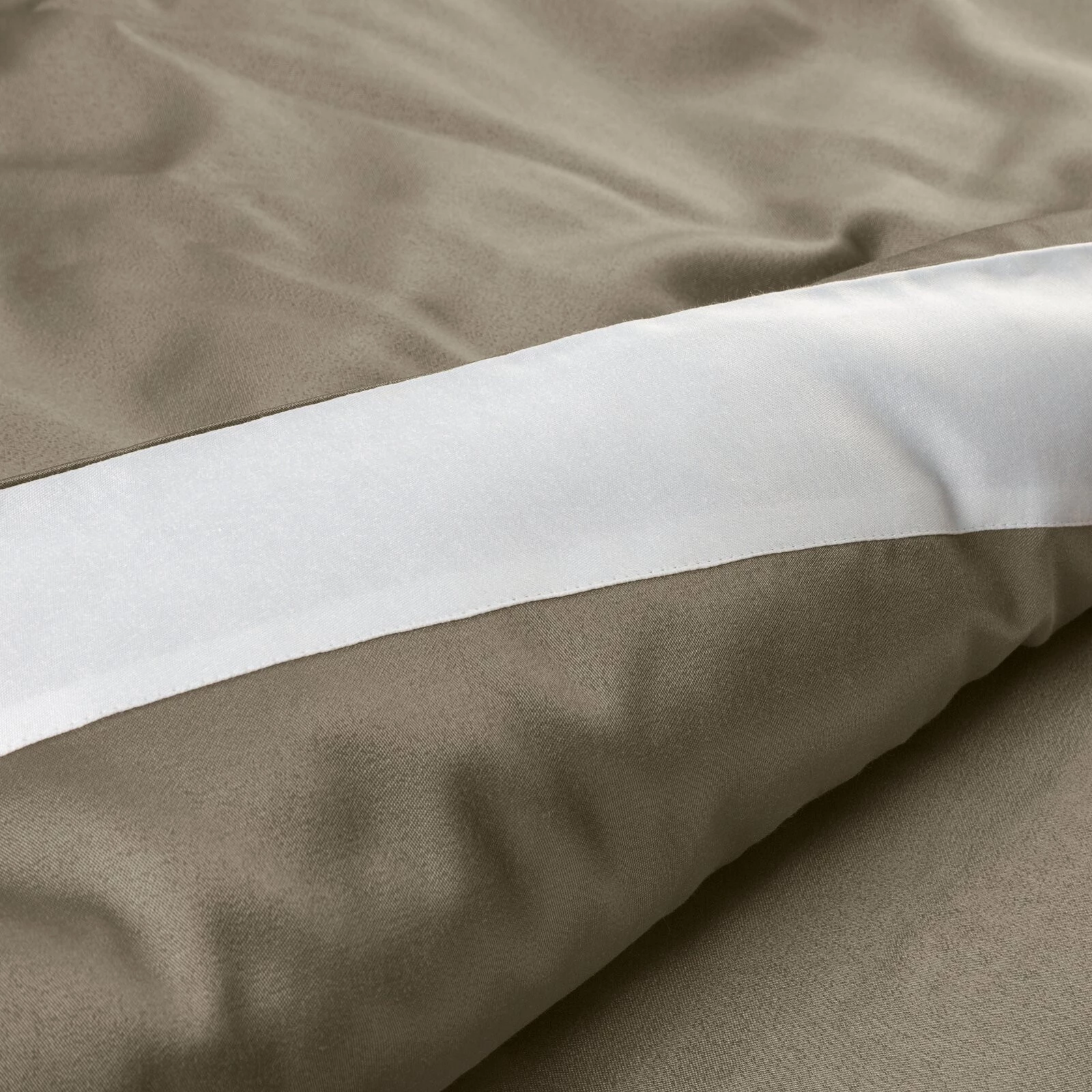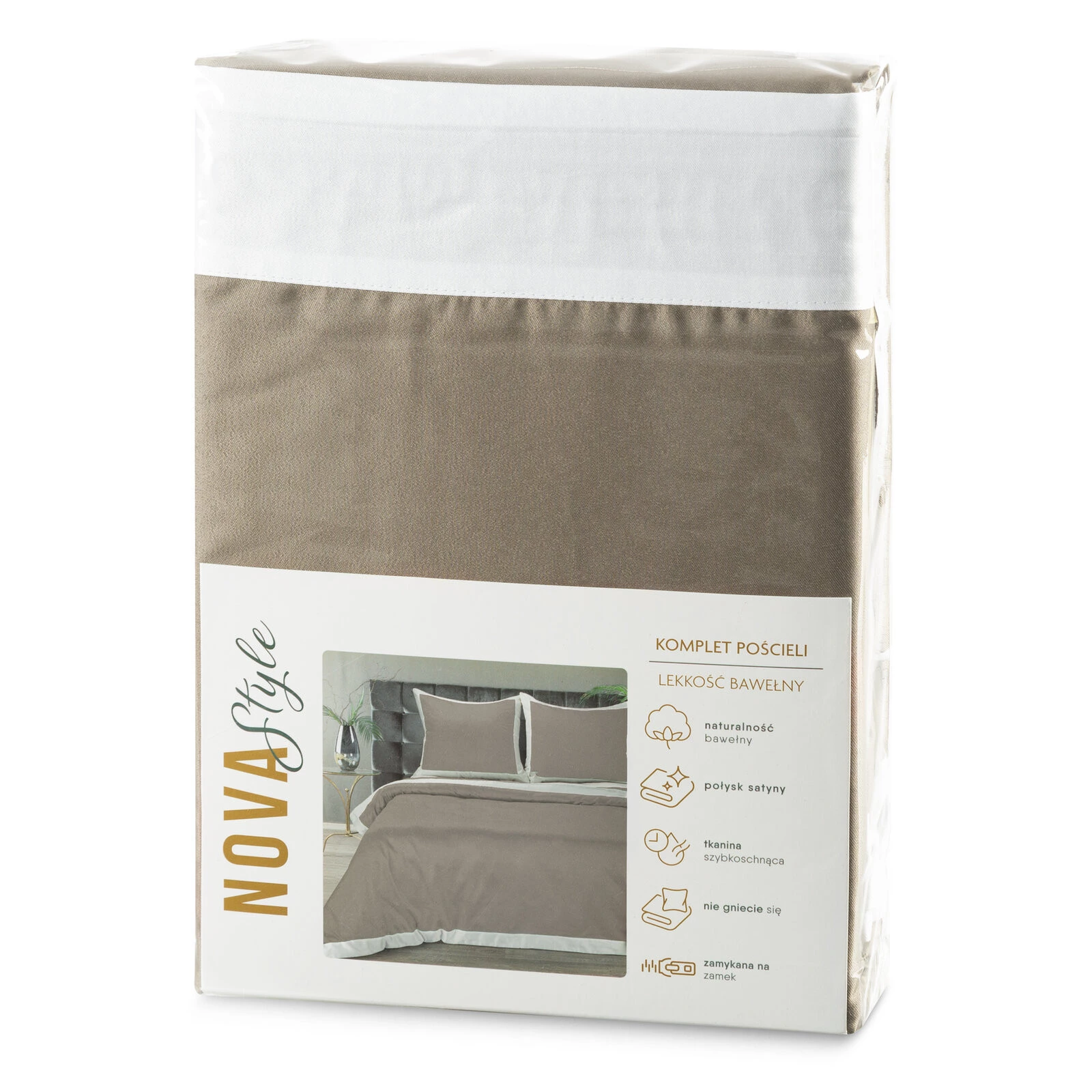 Pościel satynowa z bawełną z ozdobną kantą w kontrastowym odcieniu szerokość: 220 cm, długość: 200 cm, kolor: ciemnobeżowy, Gramatura: 125 GSM, Skład: 55% bawełna, 45% poliester