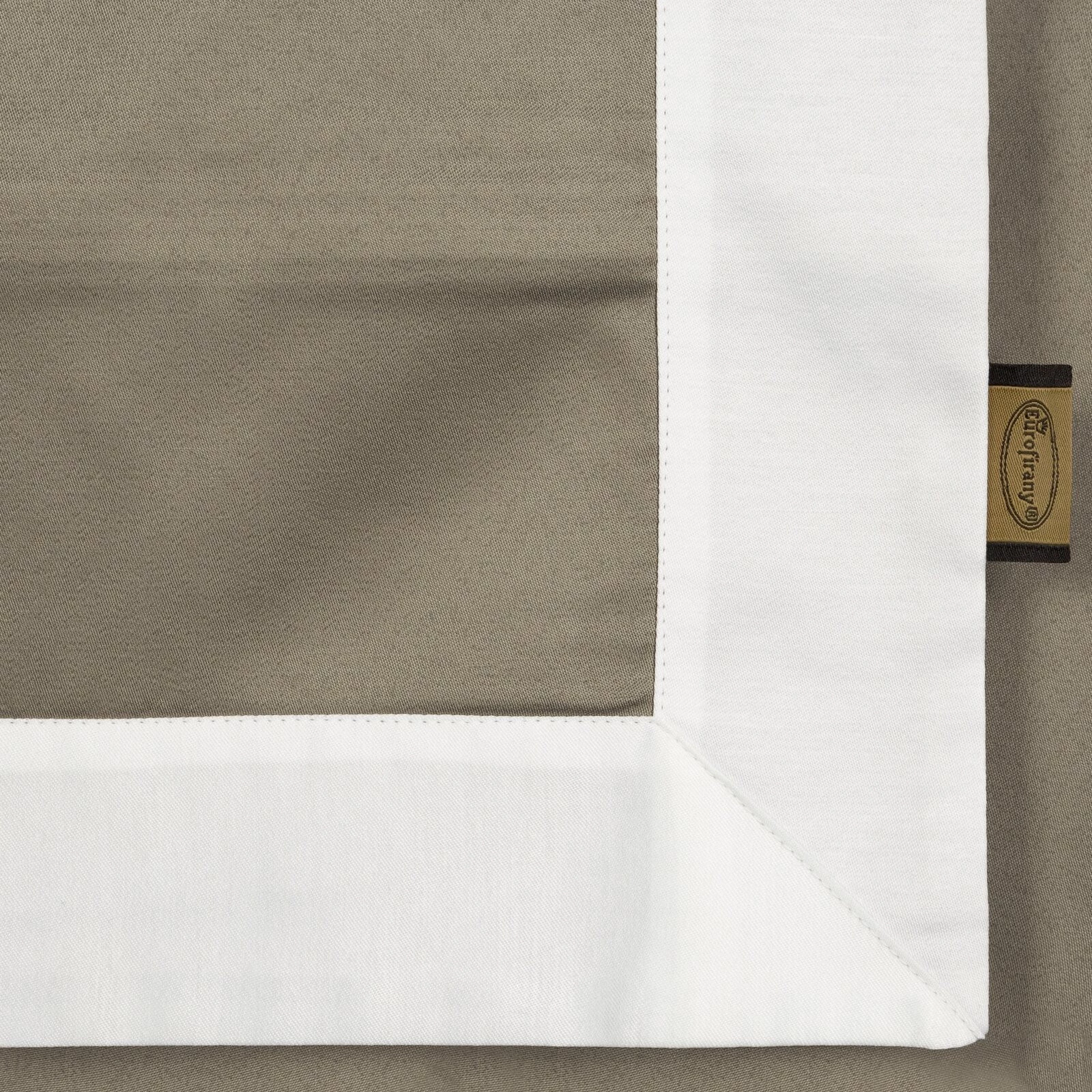 - Pościel satynowa z bawełną z ozdobną kantą w kontrastowym odcieniu szerokość: 220 cm, długość: 200 cm, kolor: ciemnobeżowy, Gramatura: 125 GSM, Skład: 55% bawełna, 45% poliester