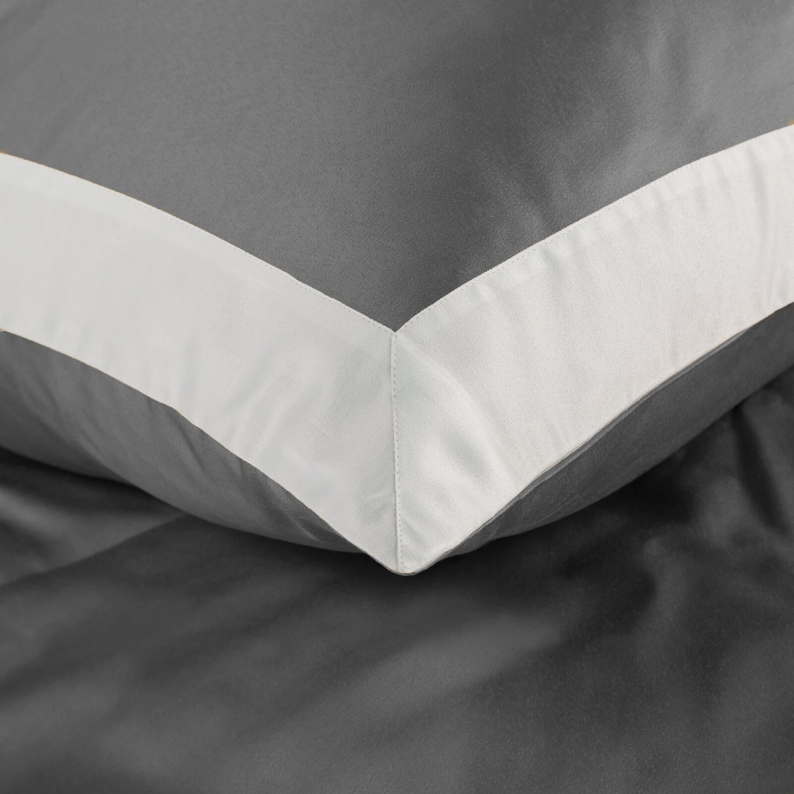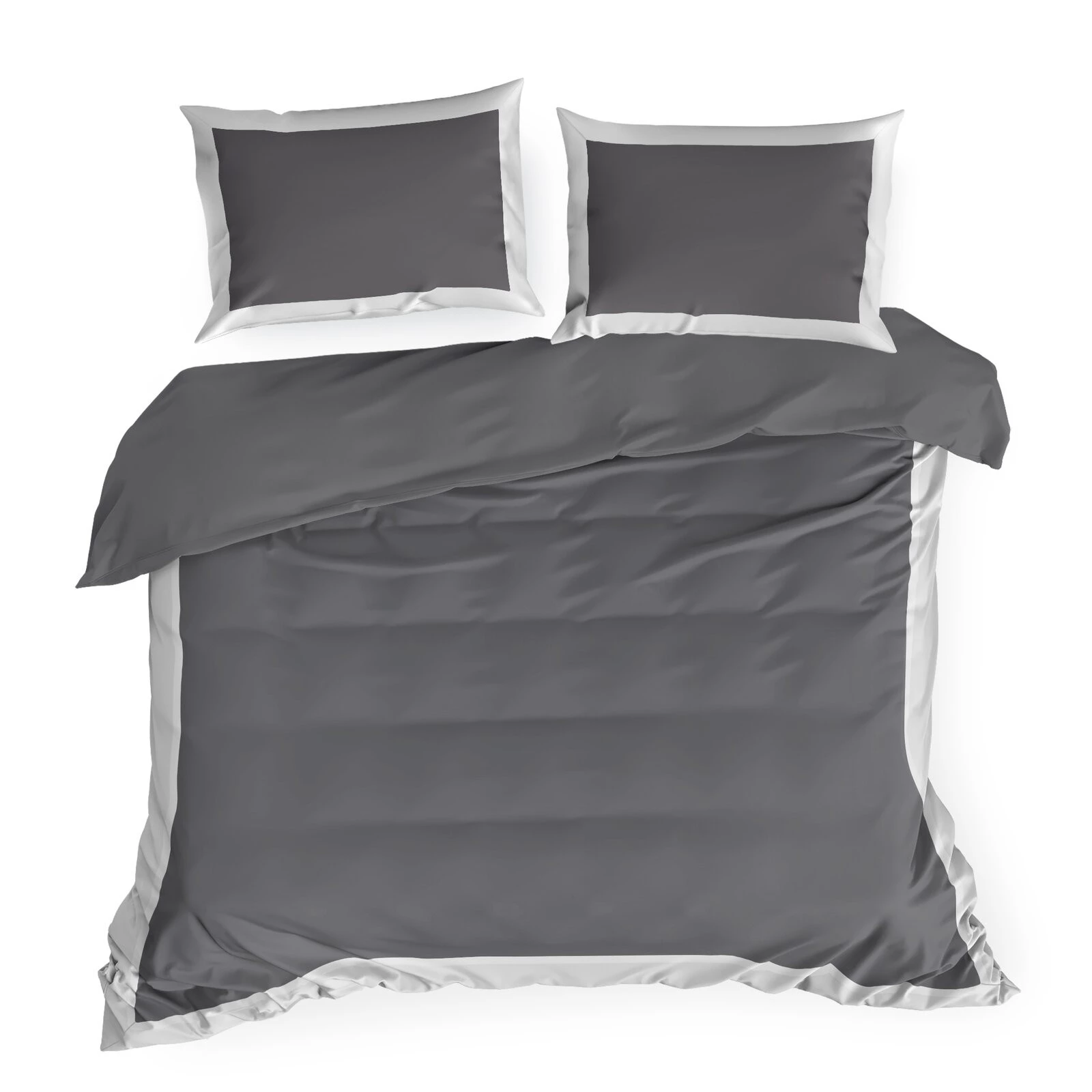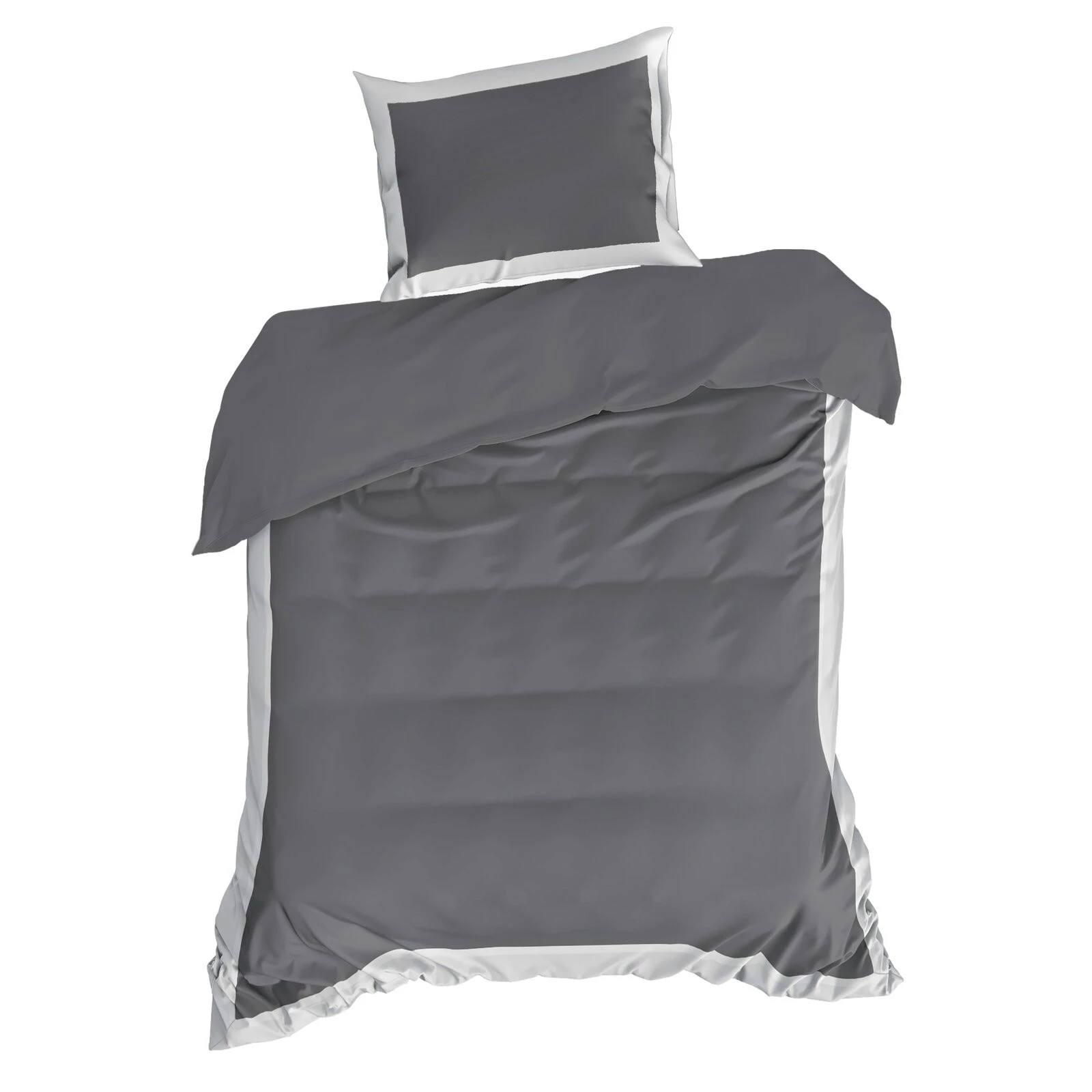 Pościel satynowa z bawełną z ozdobną kantą w kontrastowym odcieniu szerokość: 220 cm, długość: 200 cm, kolor: popielaty, Gramatura: 125 GSM, Skład: 55% bawełna, 45% poliester
