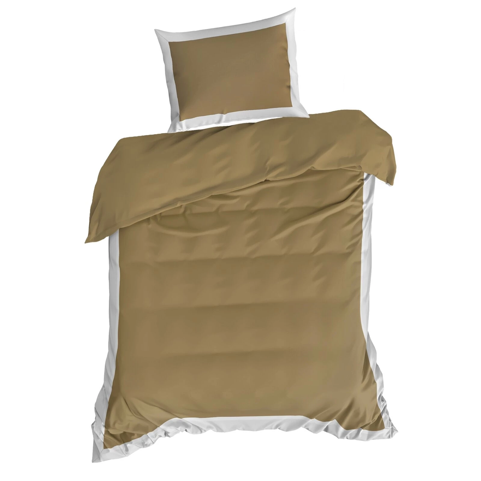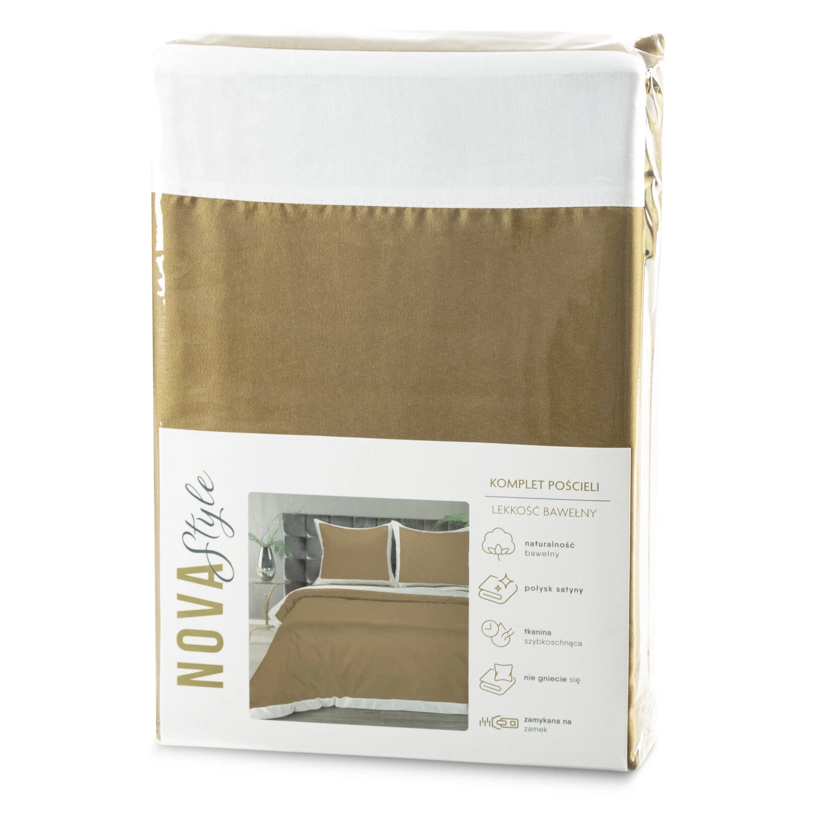Pościel satynowa z bawełną z ozdobną kantą w kontrastowym odcieniu szerokość: 160 cm, długość: 200 cm, kolor: złocisty, Gramatura: 125 GSM, Skład: 55% bawełna, 45% poliester