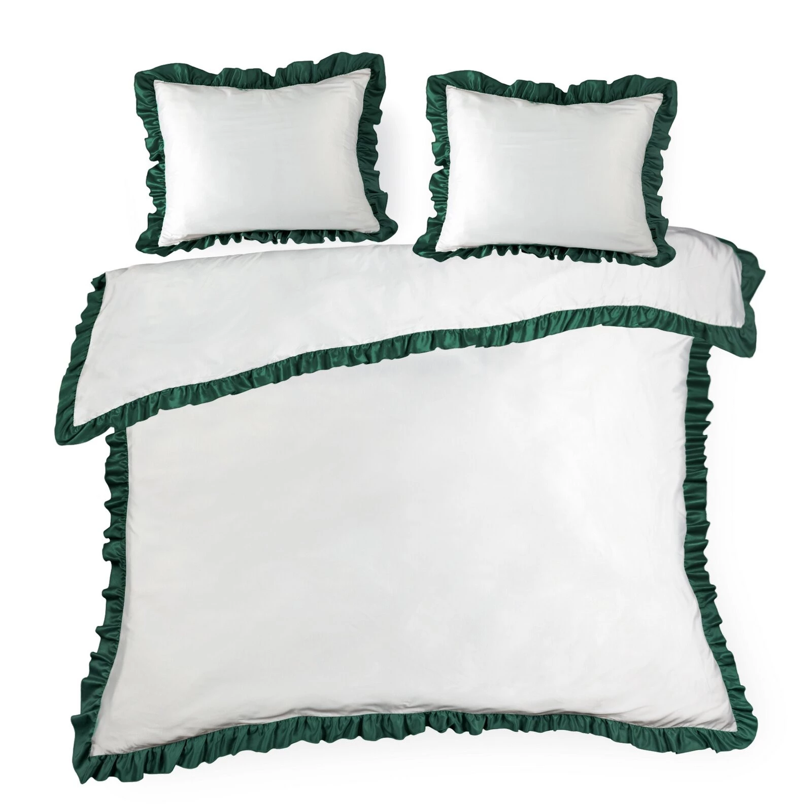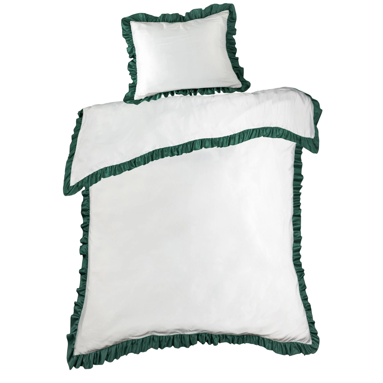 Komplet pościeli z bawełną, zdobionej falbanką szerokość: 160 cm, długość: 200 cm, kolor: biały, Gramatura: 125 GSM, Skład: 55% bawełna, 45% poliester