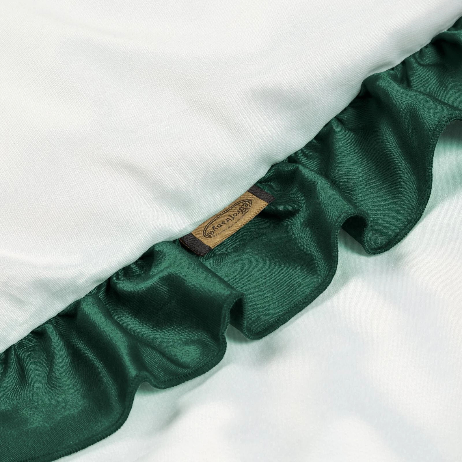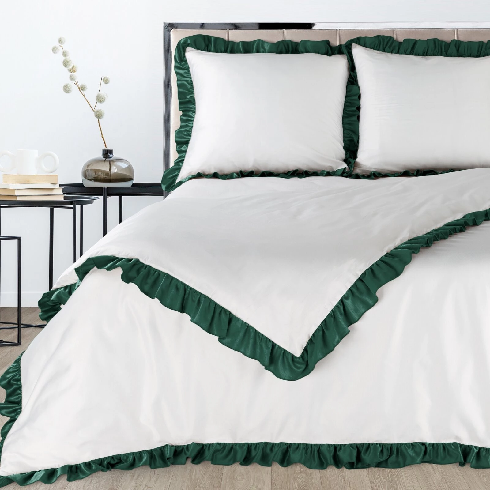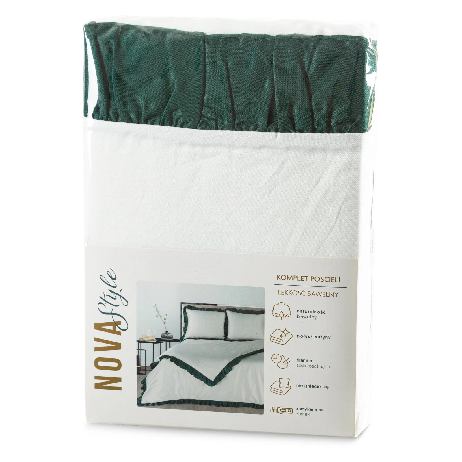 Komplet pościeli z bawełną, zdobionej falbanką szerokość: 220 cm, długość: 200 cm, kolor: biały, Gramatura: 125 GSM, Skład: 55% bawełna, 45% poliester