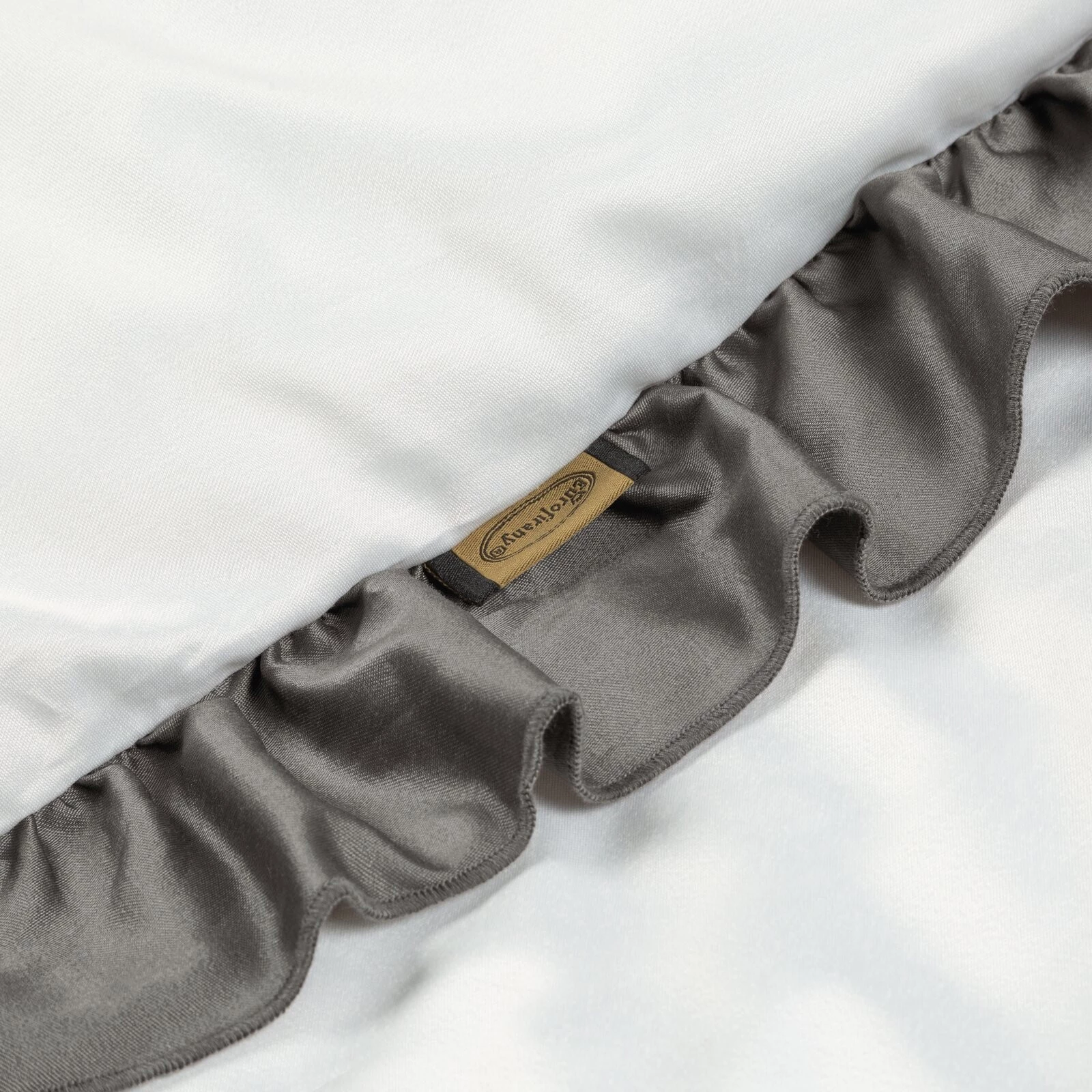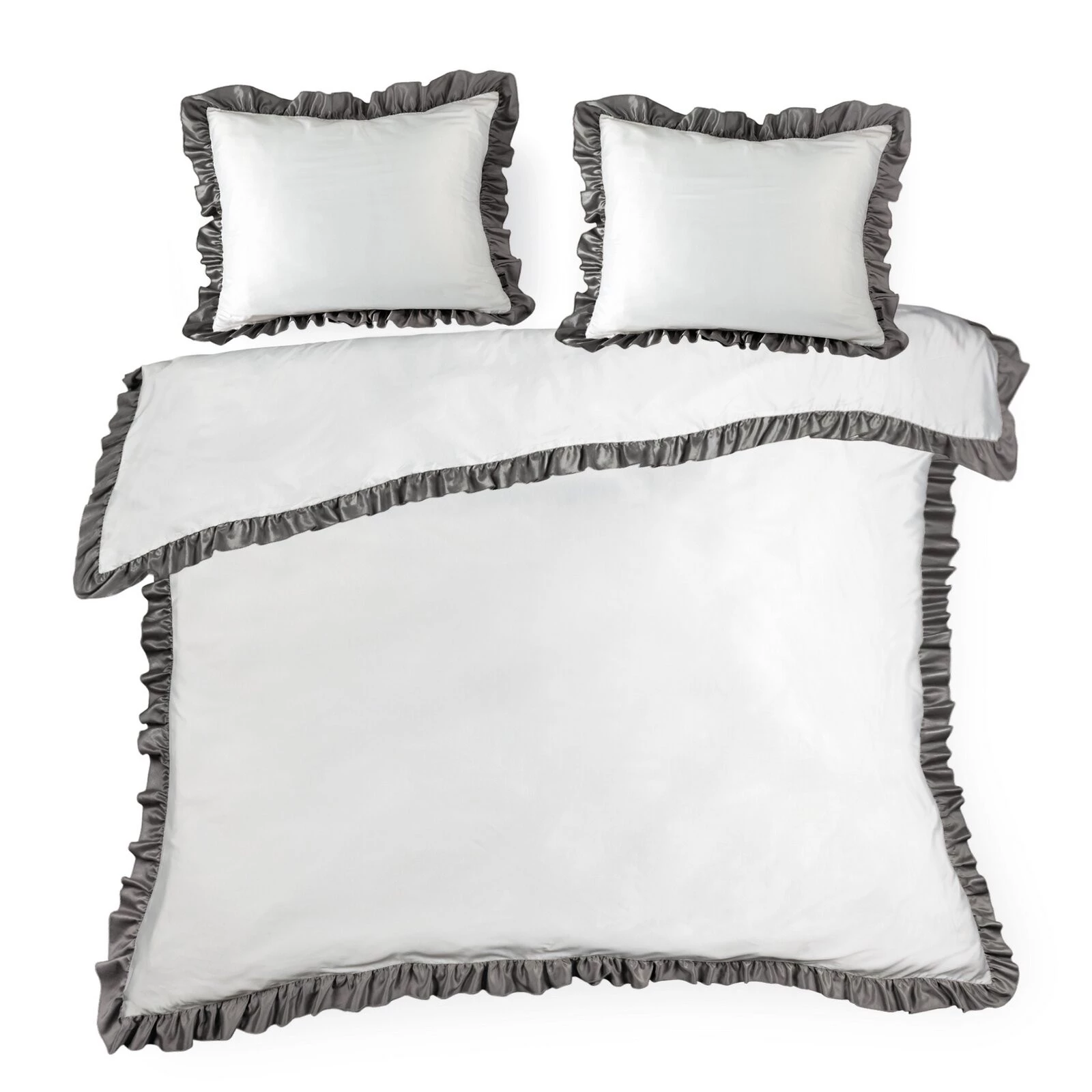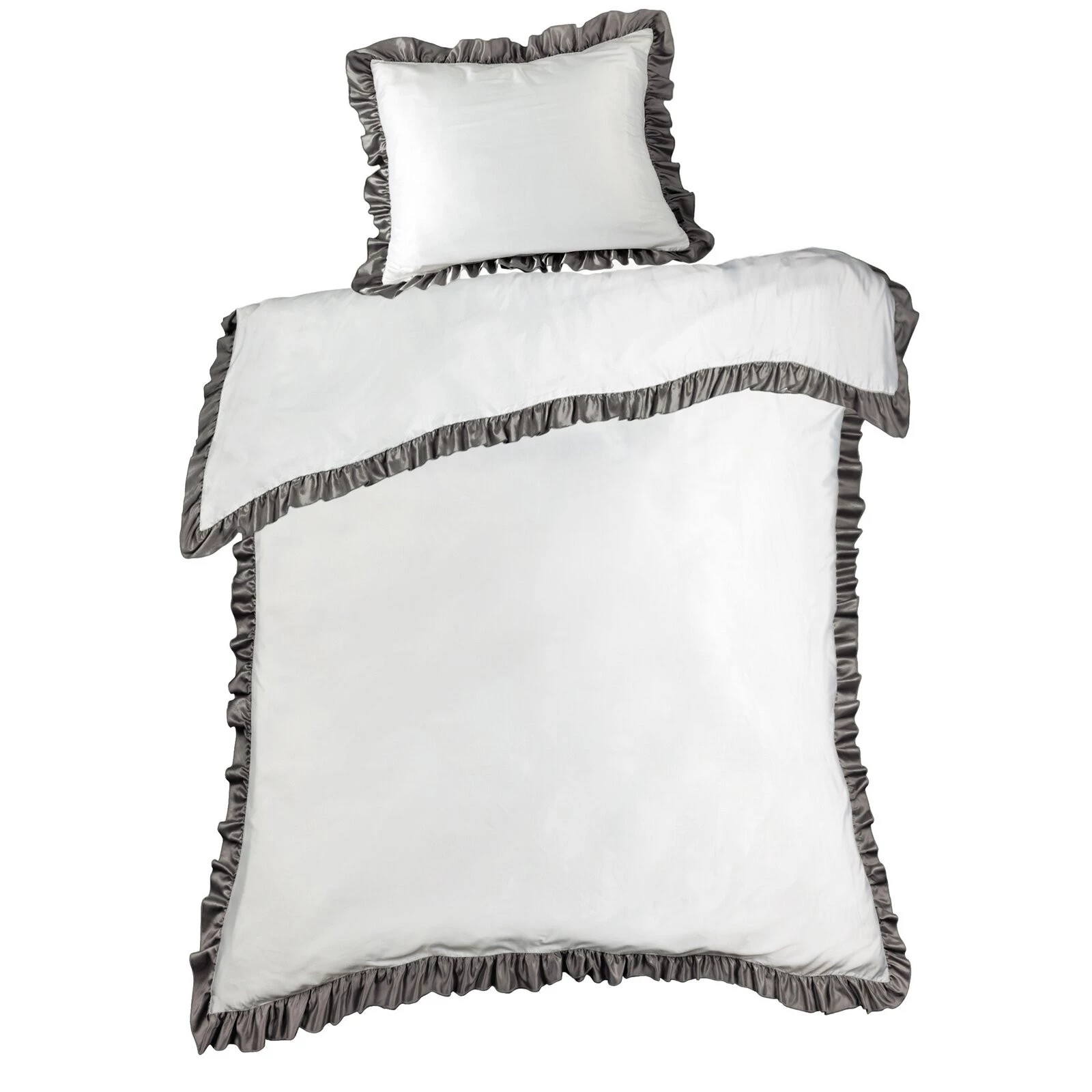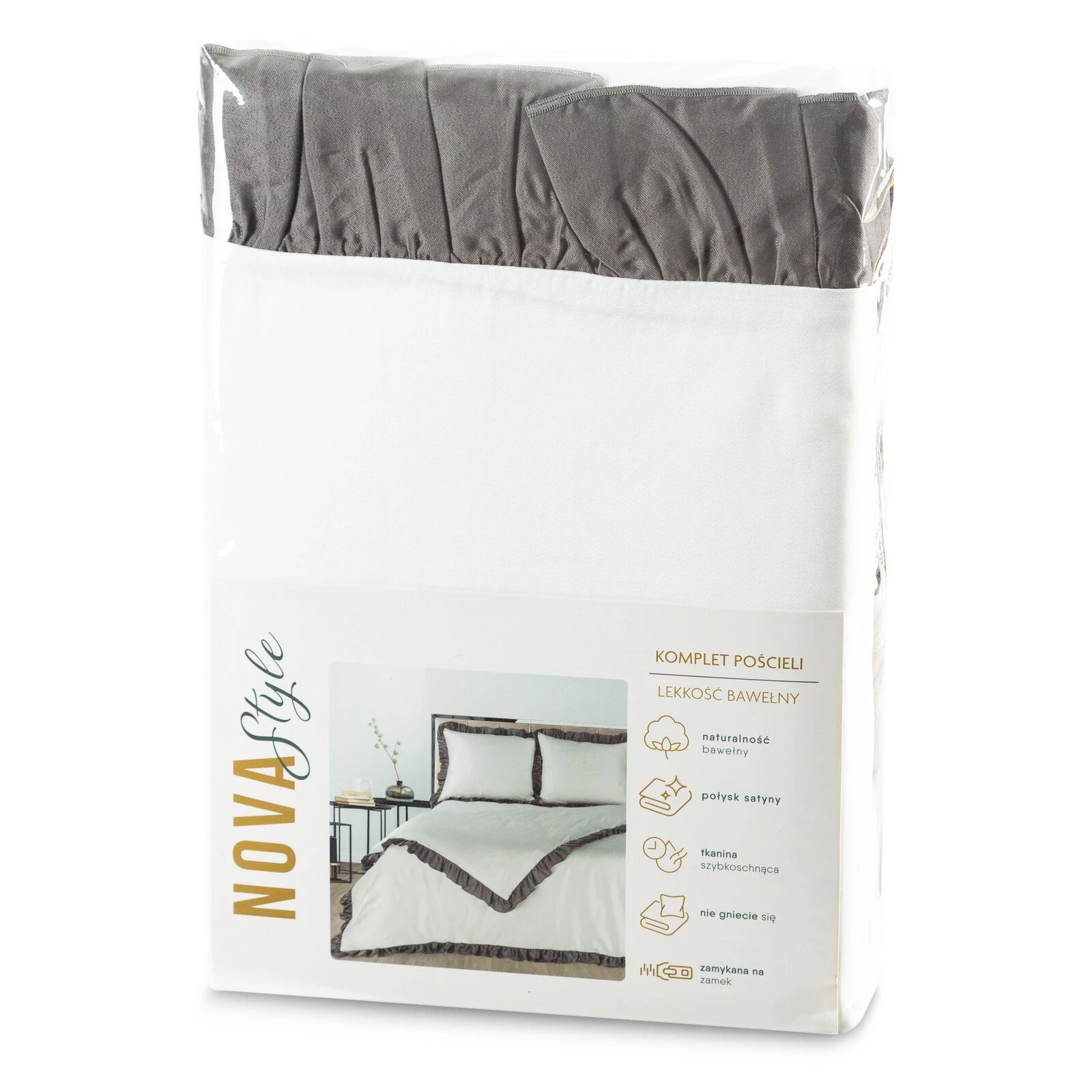 Komplet pościeli z bawełną, zdobionej falbanką szerokość: 160 cm, długość: 200 cm, kolor: biały, Gramatura: 125 GSM, Skład: 55% bawełna, 45% poliester