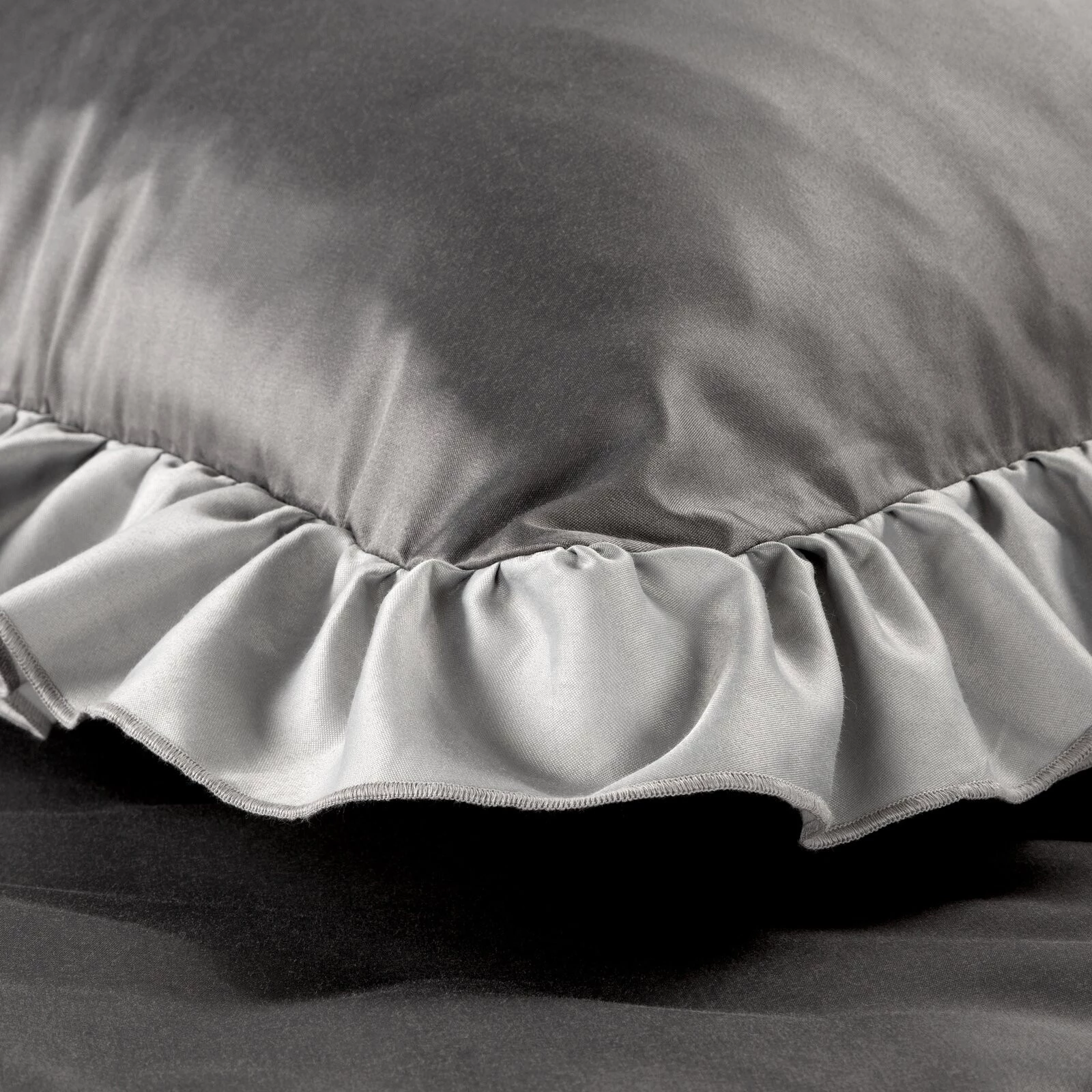 Komplet pościeli z bawełną, zdobionej falbanką szerokość: 220 cm, długość: 200 cm, kolor: stalowy, Gramatura: 125 GSM, Skład: 55% bawełna, 45% poliester