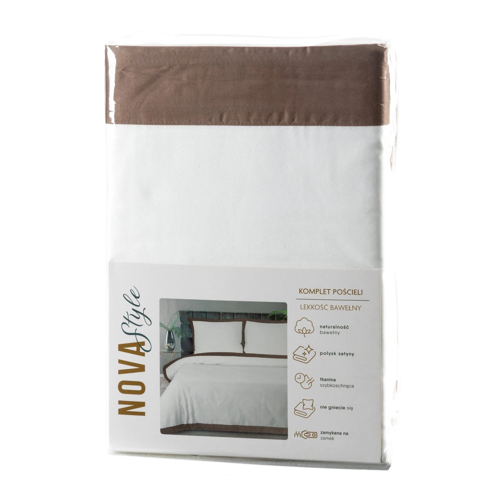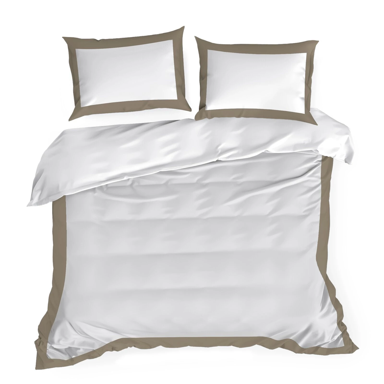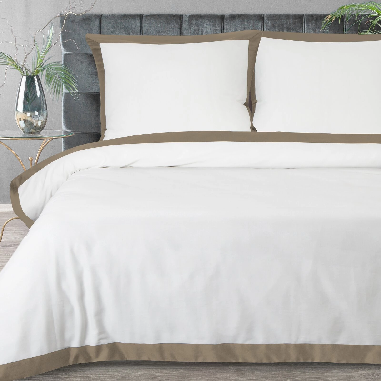 Pościel satynowa z bawełną z ozdobną kantą w kontrastowym odcieniu szerokość: 220 cm, długość: 200 cm, kolor: biały, Gramatura: 125 GSM, Skład: 55% bawełna, 45% poliester