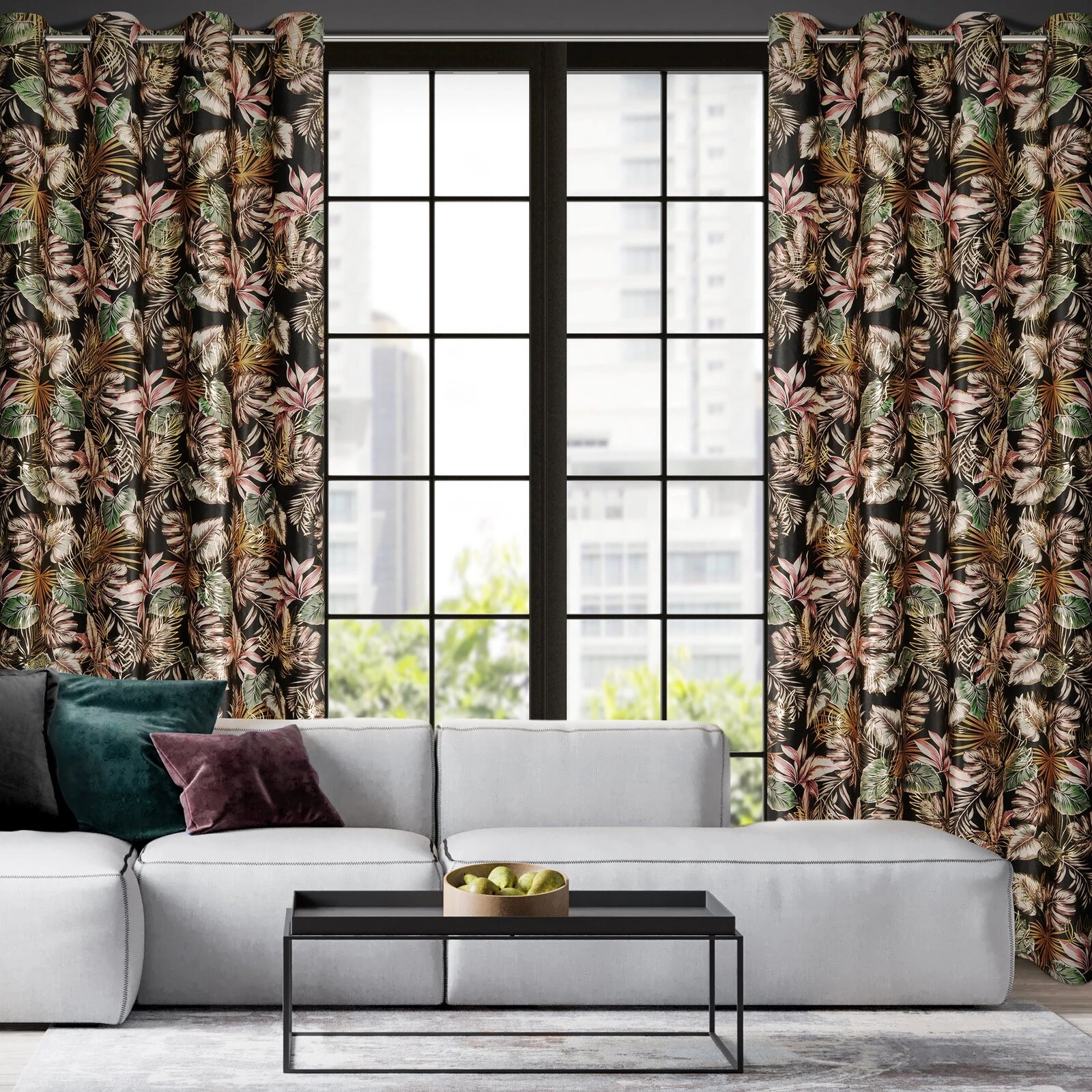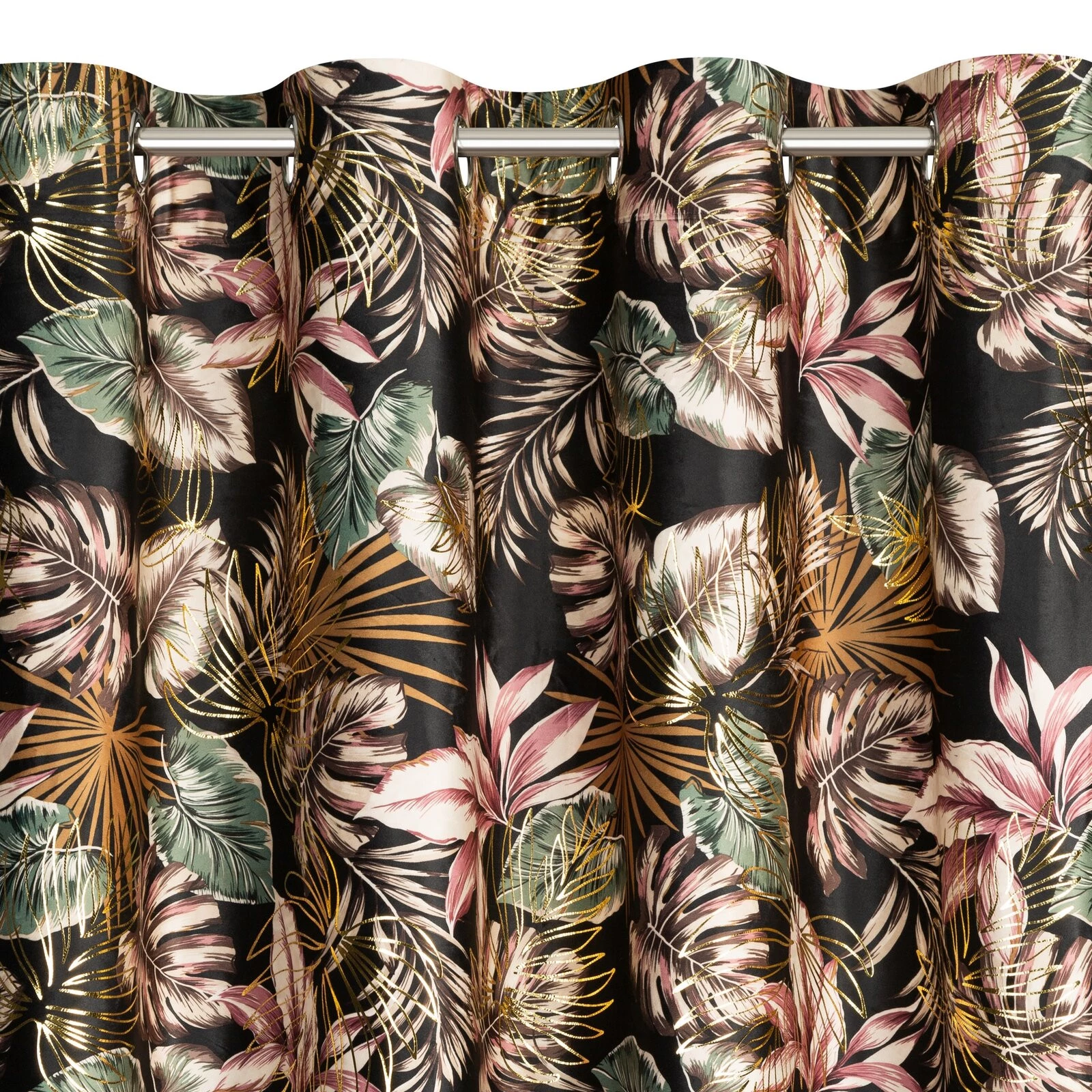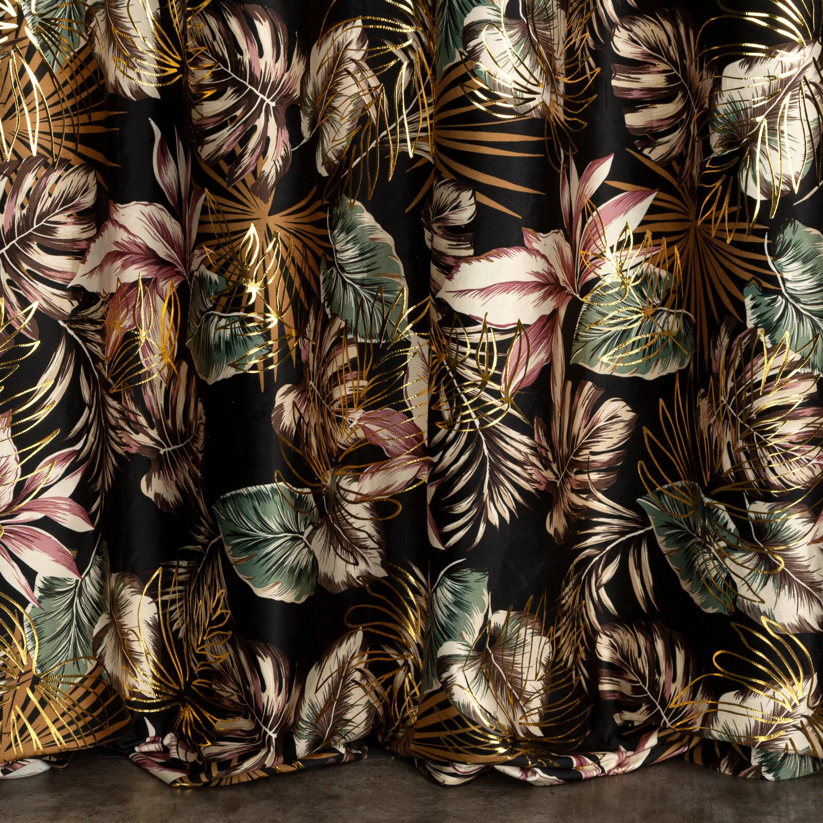 - Zasłona welwetowa ze złotym nadrukiem szerokość: 140 cm, długość: 250 cm, kolor: czarny, Gramatura: 200 GSM, Skład: 100% poliester