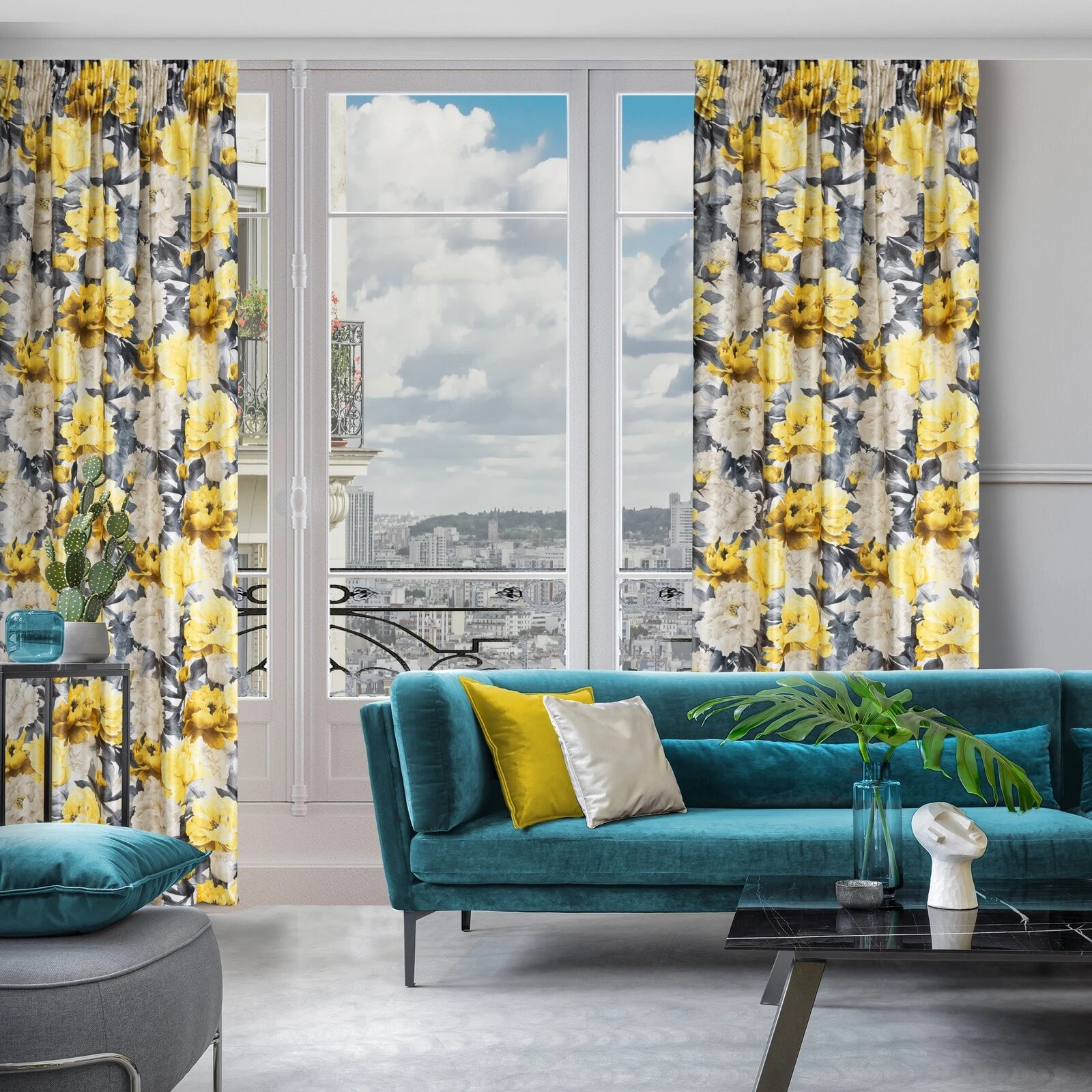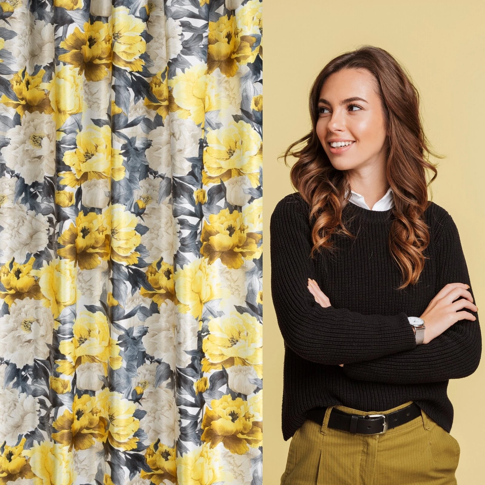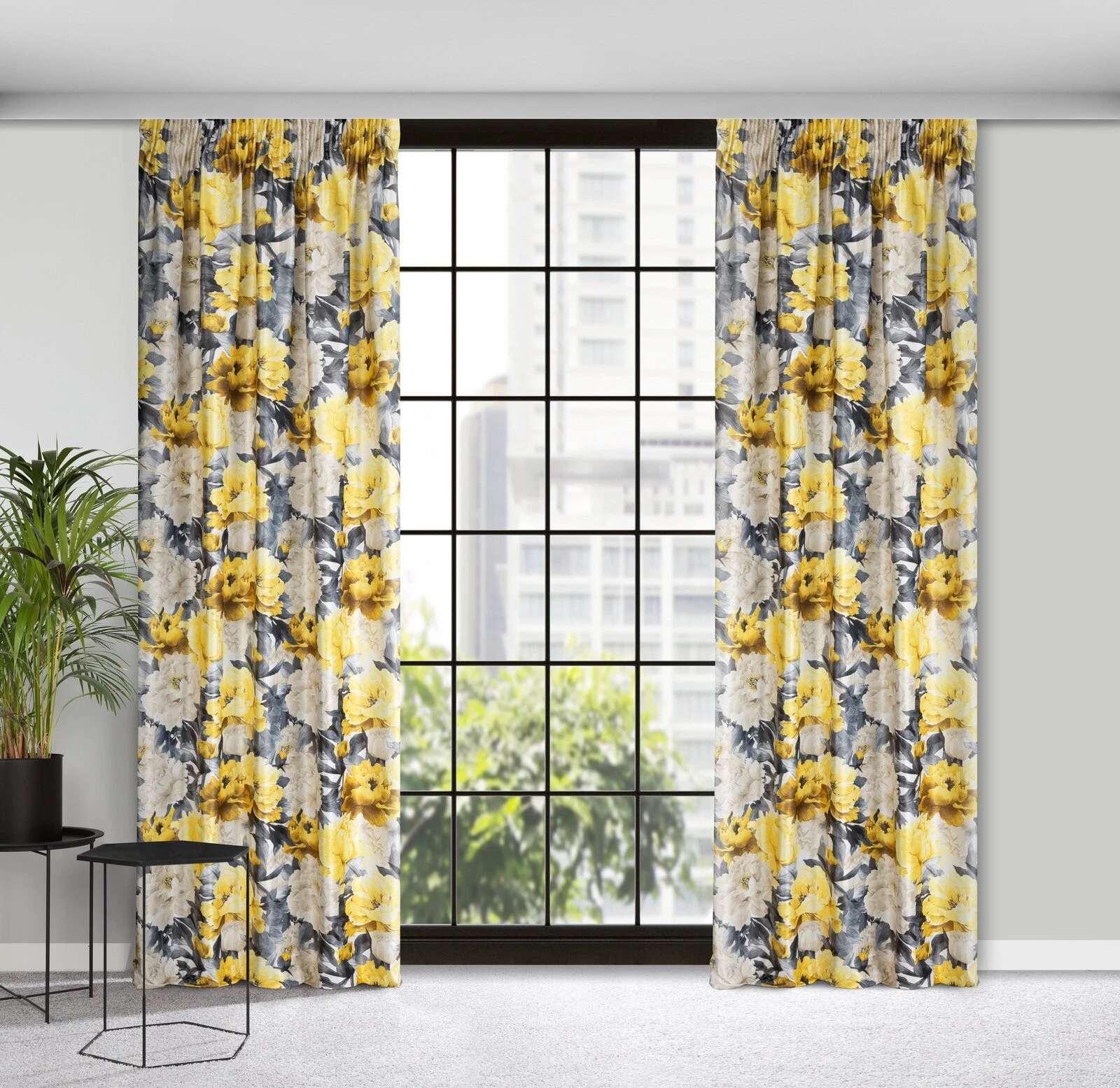 - Zasłona welwetowa z kwiatowym nadrukiem szerokość: 140 cm, długość: 270 cm, kolor: kremowy, Gramatura: 200 GSM, Skład: 100% poliester